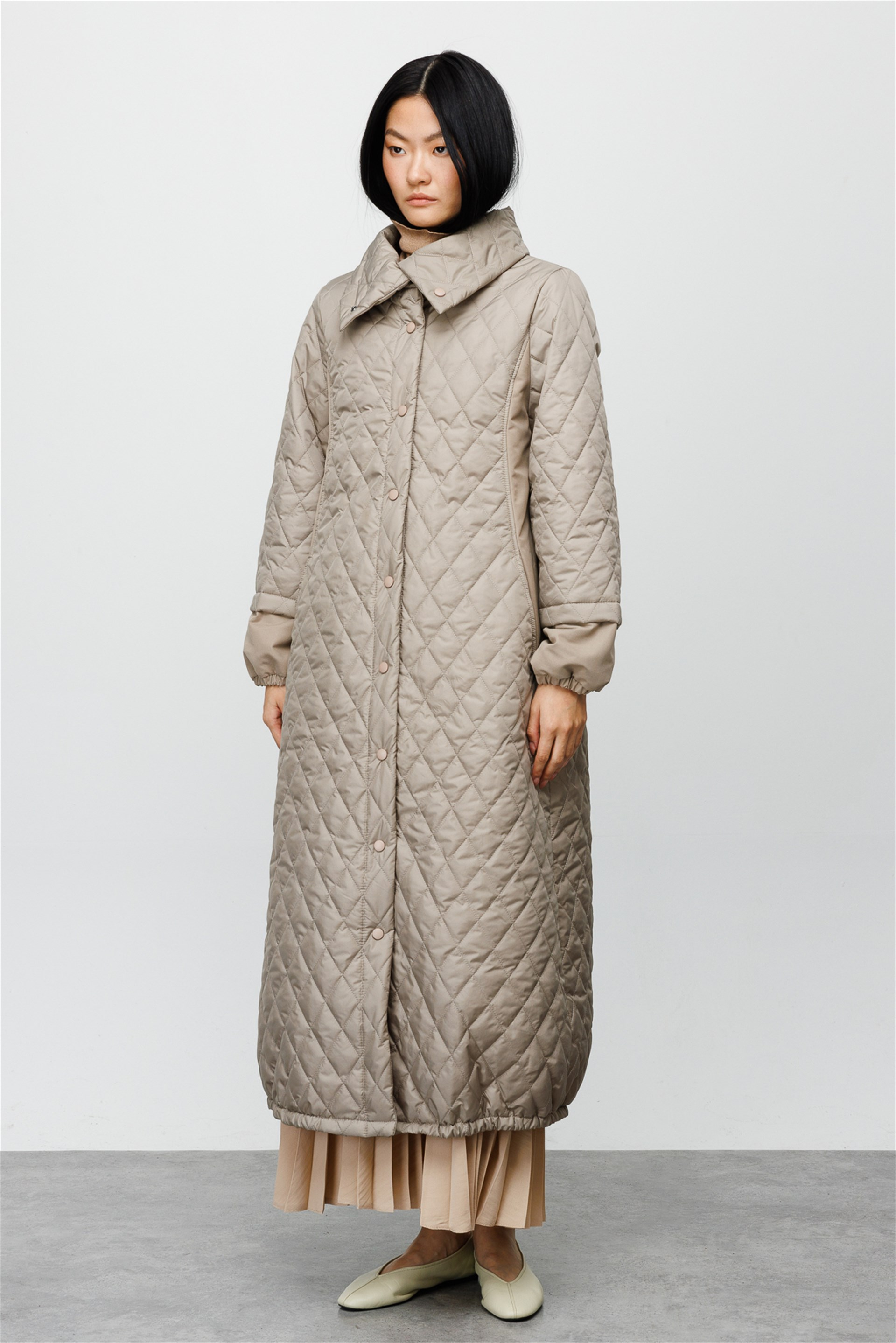 Kol Altı ve Kol Uçları Helene Garni Detaylı Kapitone Manto-Taş (222533M KABAN-12)
