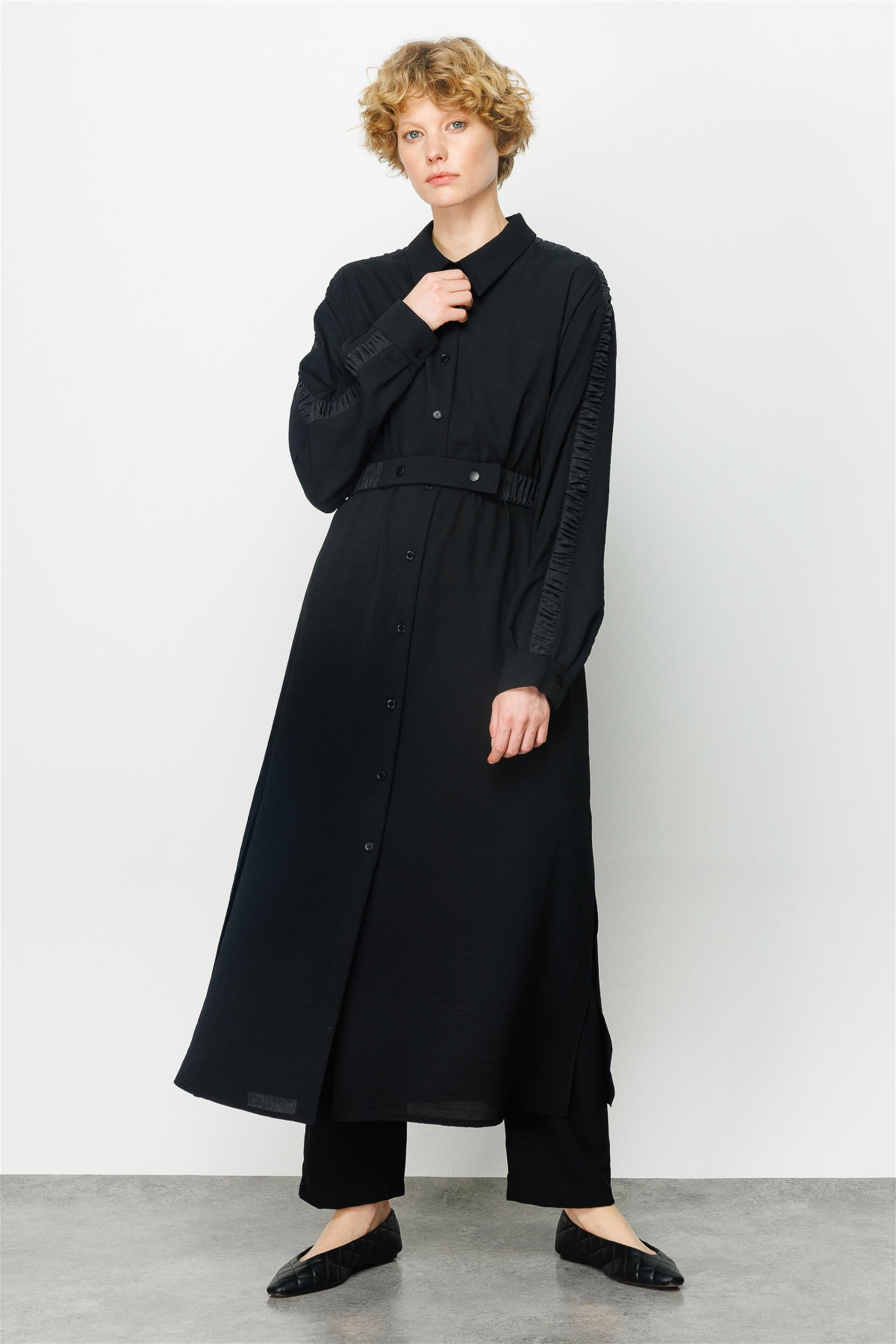 Kol Ortası Ve Bedeni Tafta Büzgü Nefes Alan Zor Kırışan Kumaştan Spor Kap-Siyah (231841M BÜZGÜLÜ KAP-01)