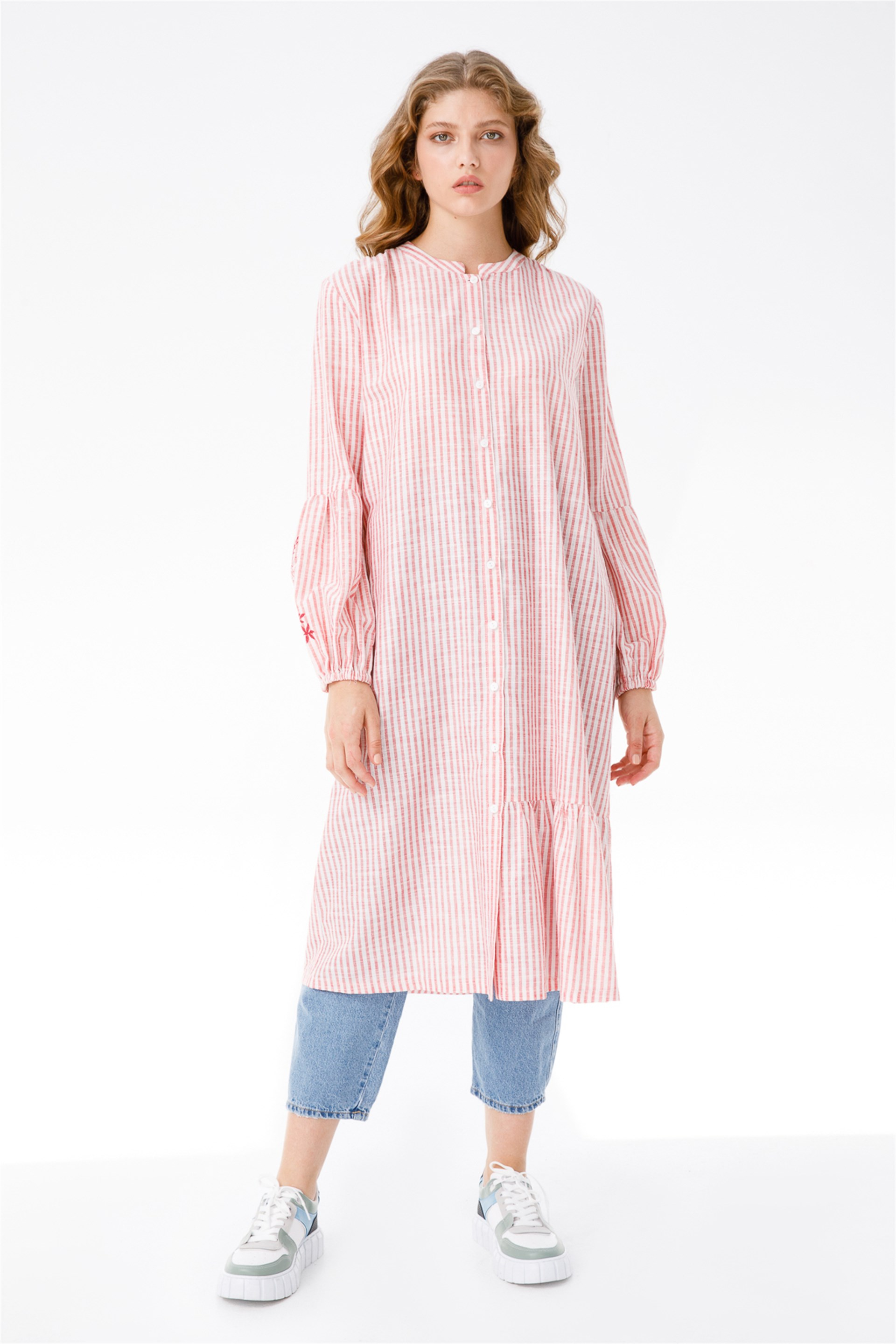 Kolları İşleme Baskılı Pamuk Tunik-Kırmızı (211527M KAP-41)