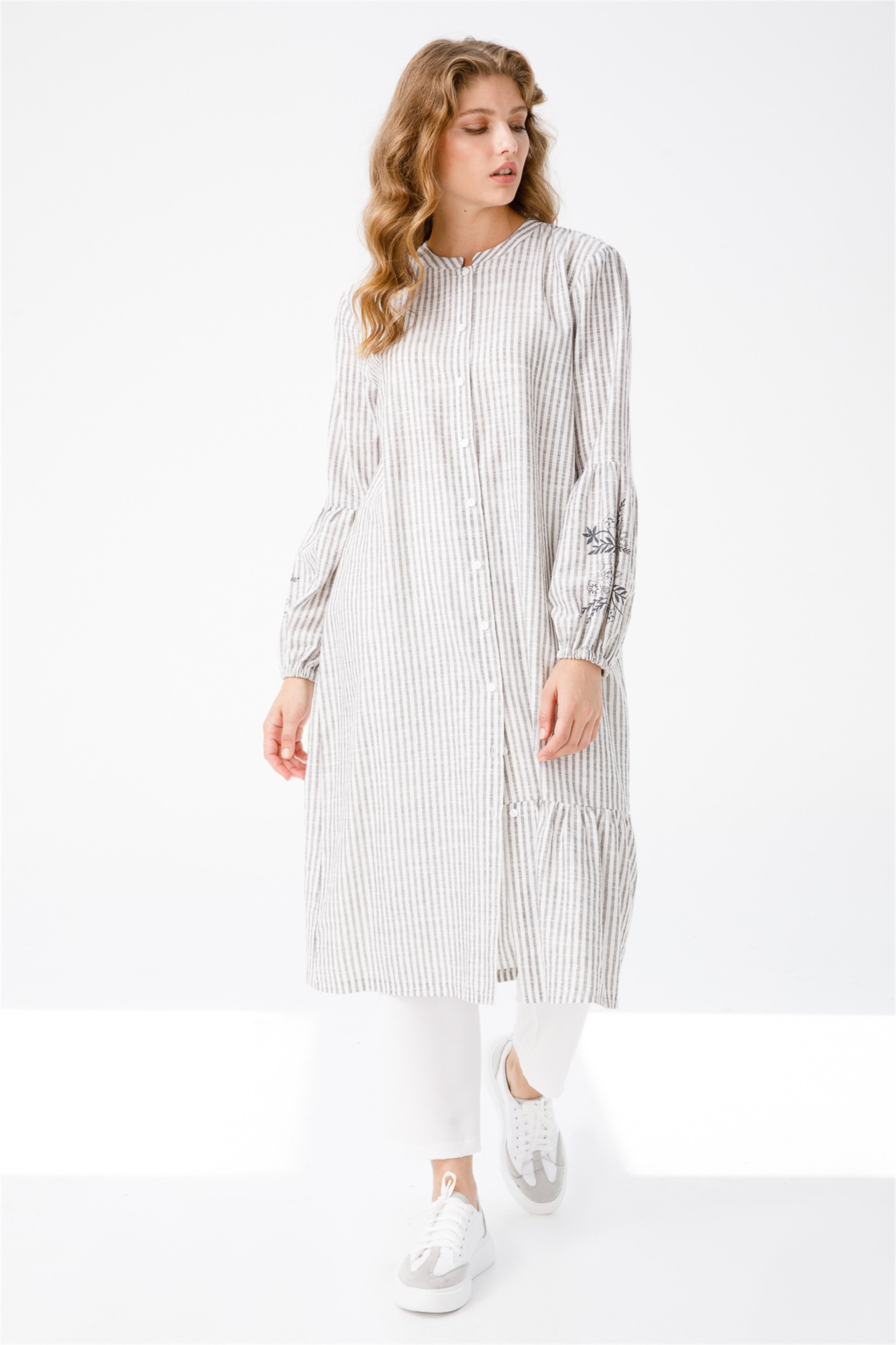 Kolları İşleme Baskılı Pamuk Tunik-Siyah