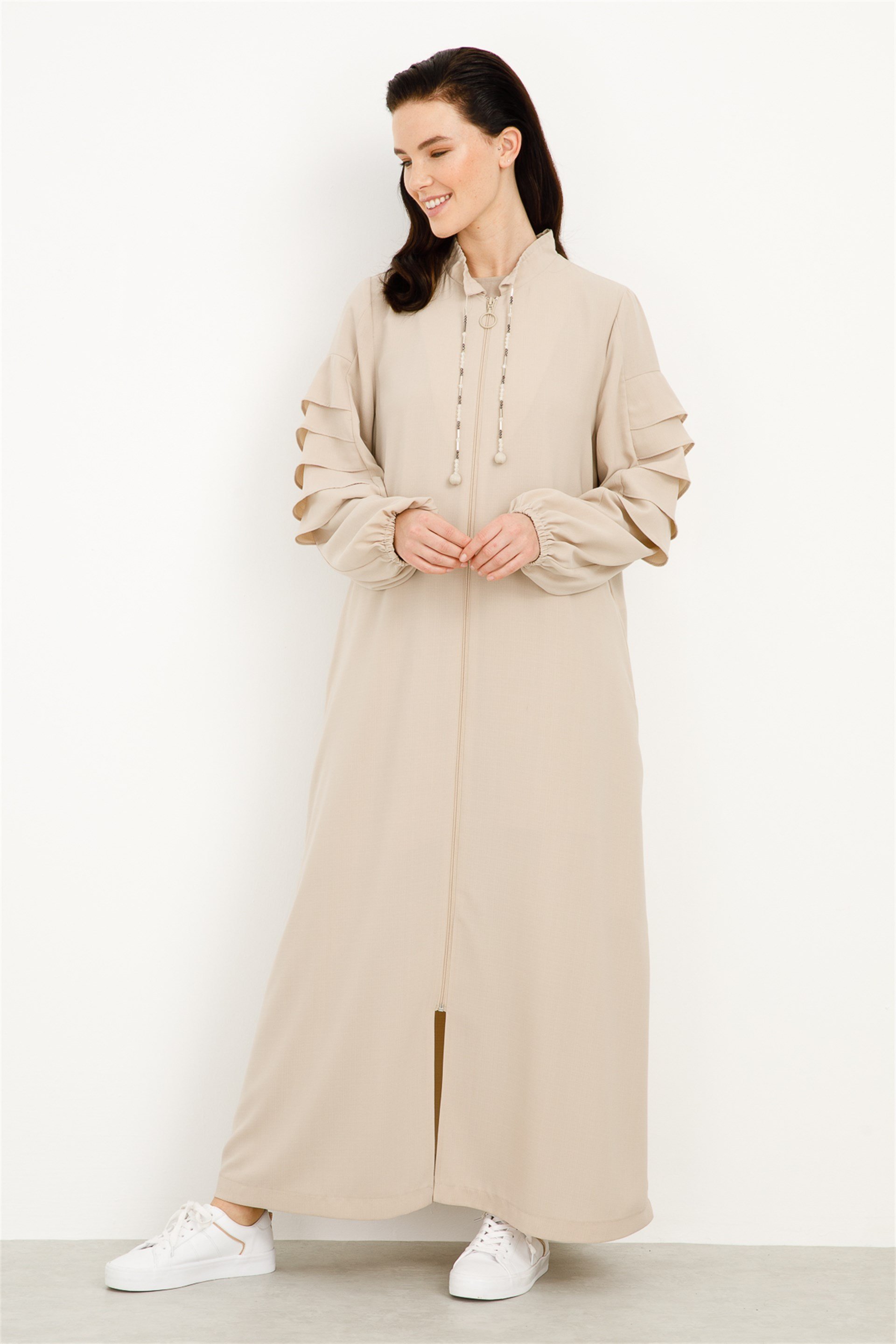 Kolları Kat Detaylı, Yakası Boncuk Aksesuarlı Tam Boy Kap-Taş (211862M PARDESÜ-12)