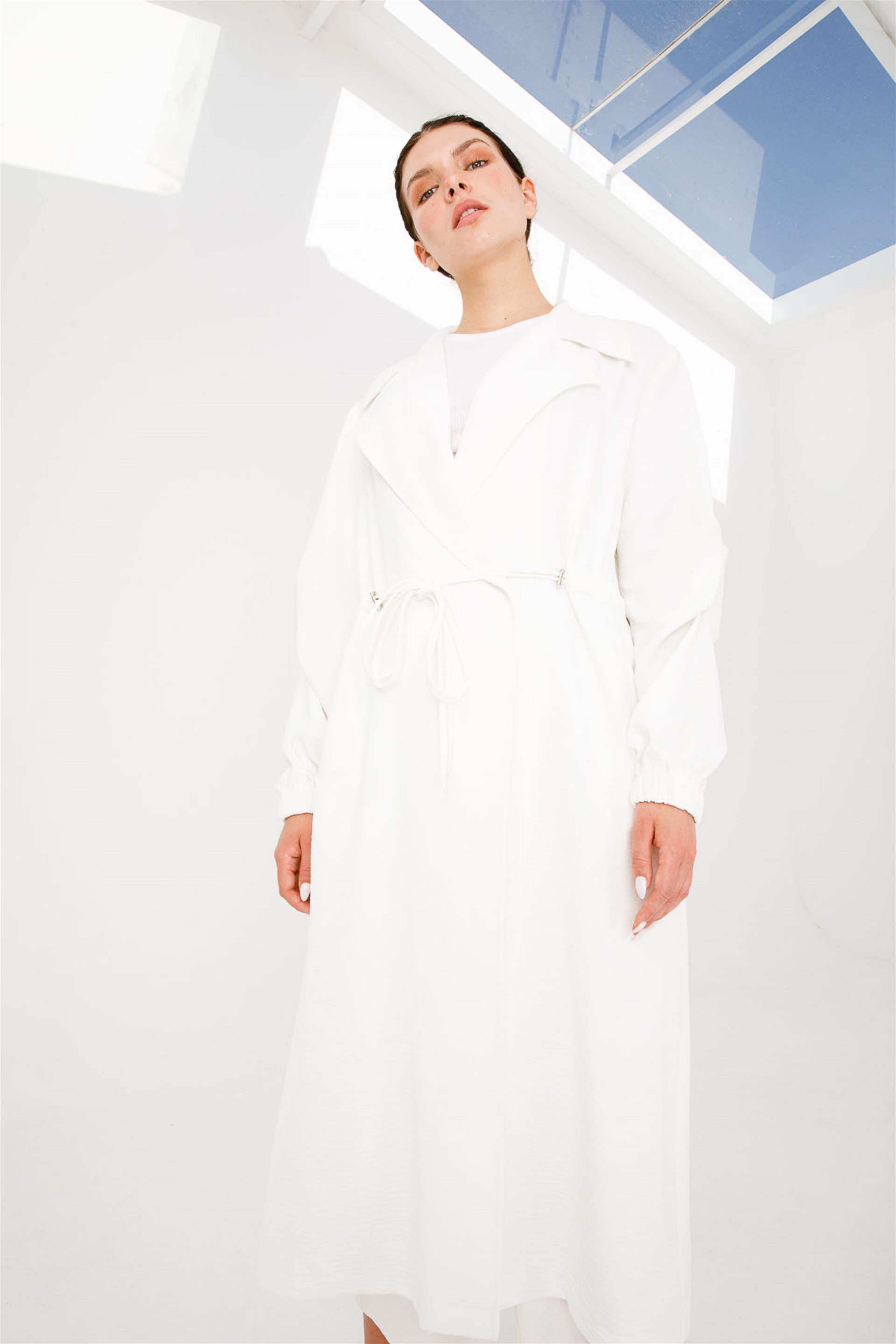 Kolları Pile Detaylı Spor ve Şık Kap (Trench)-Ekru (211890M PARDESÜ-09)