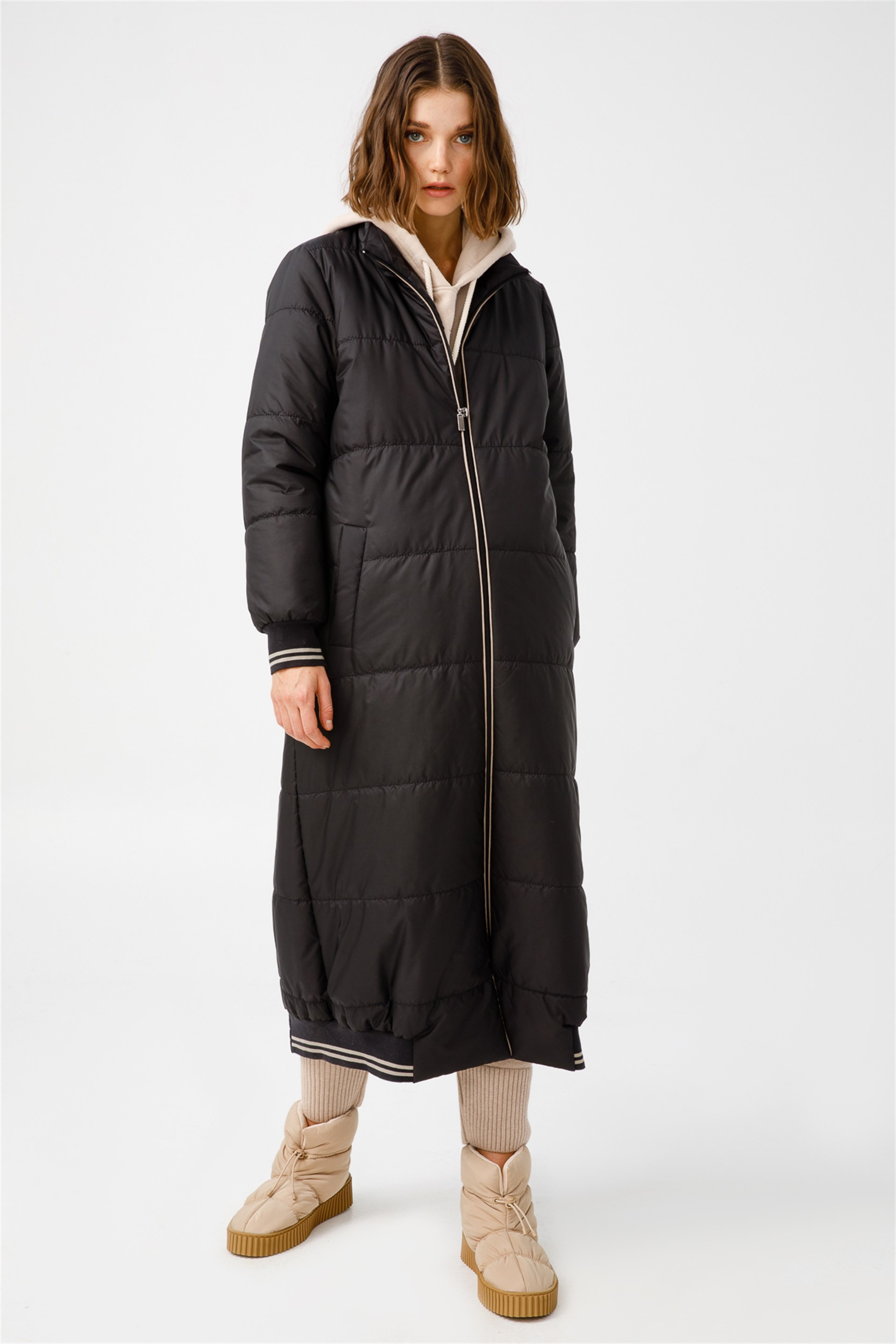 Kolları ve Etek Uçları Triko Detaylı Dolgulu Kapitone Spor Manto-Siyah (212532M KABAN-01)
