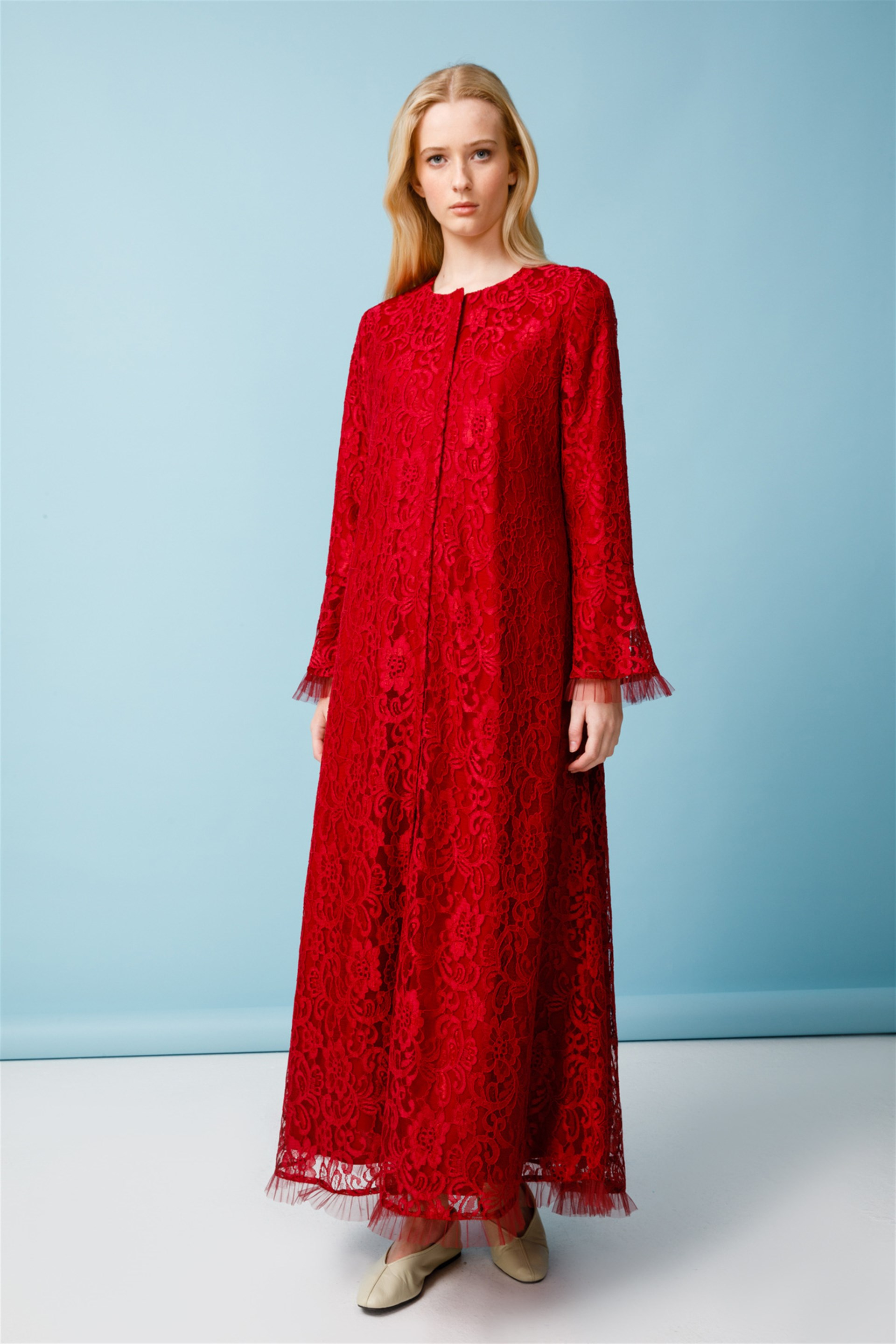 Komple Dantel Güpür İçi Penye Astarlı Özel Günler İçin Vazgeçilmez Elite Ferace-Bordo