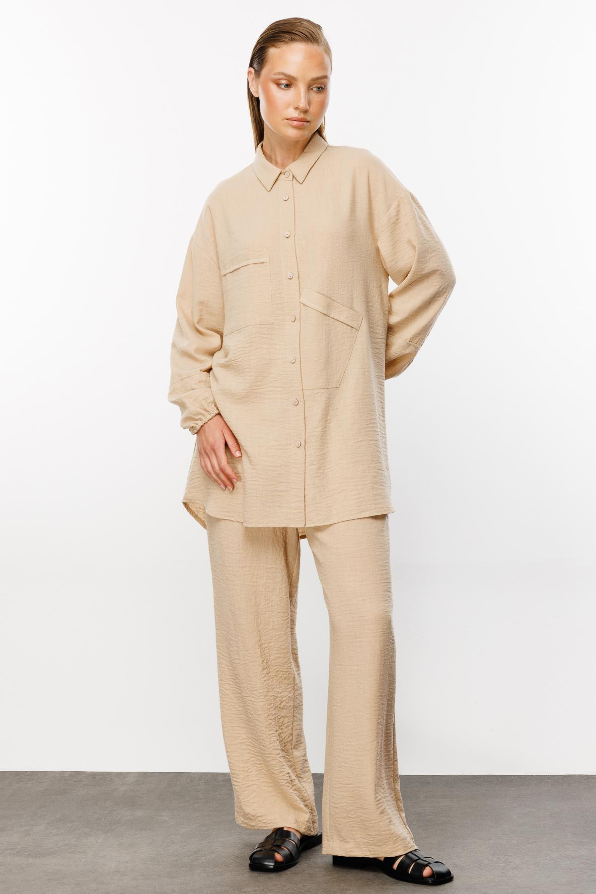 Kontrast Dikiş Detaylı Keten Dokuma Pantalonlu Spor Takım-Taş (241824M TAKIM-12)