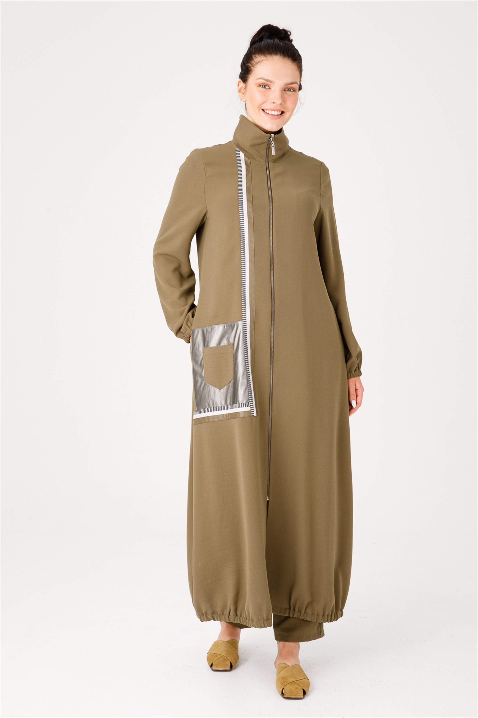 Kontrast Marin Garnili, Parlak Cep Detaylı Spor Kap Ferace-Haki (211827M PARDESÜ-20)