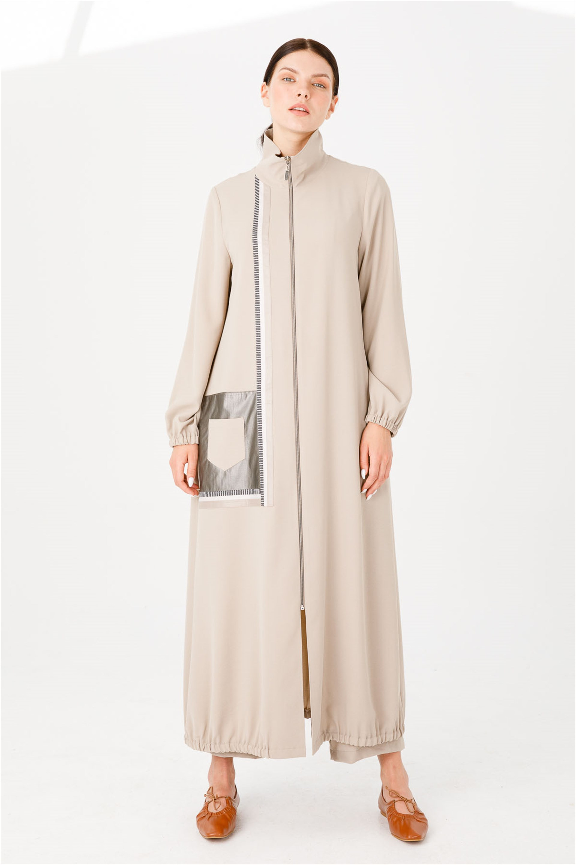 Kontrast Marin Garnili, Parlak Cep Detaylı Spor Kap Ferace-Taş (211827M PARDESÜ-12)