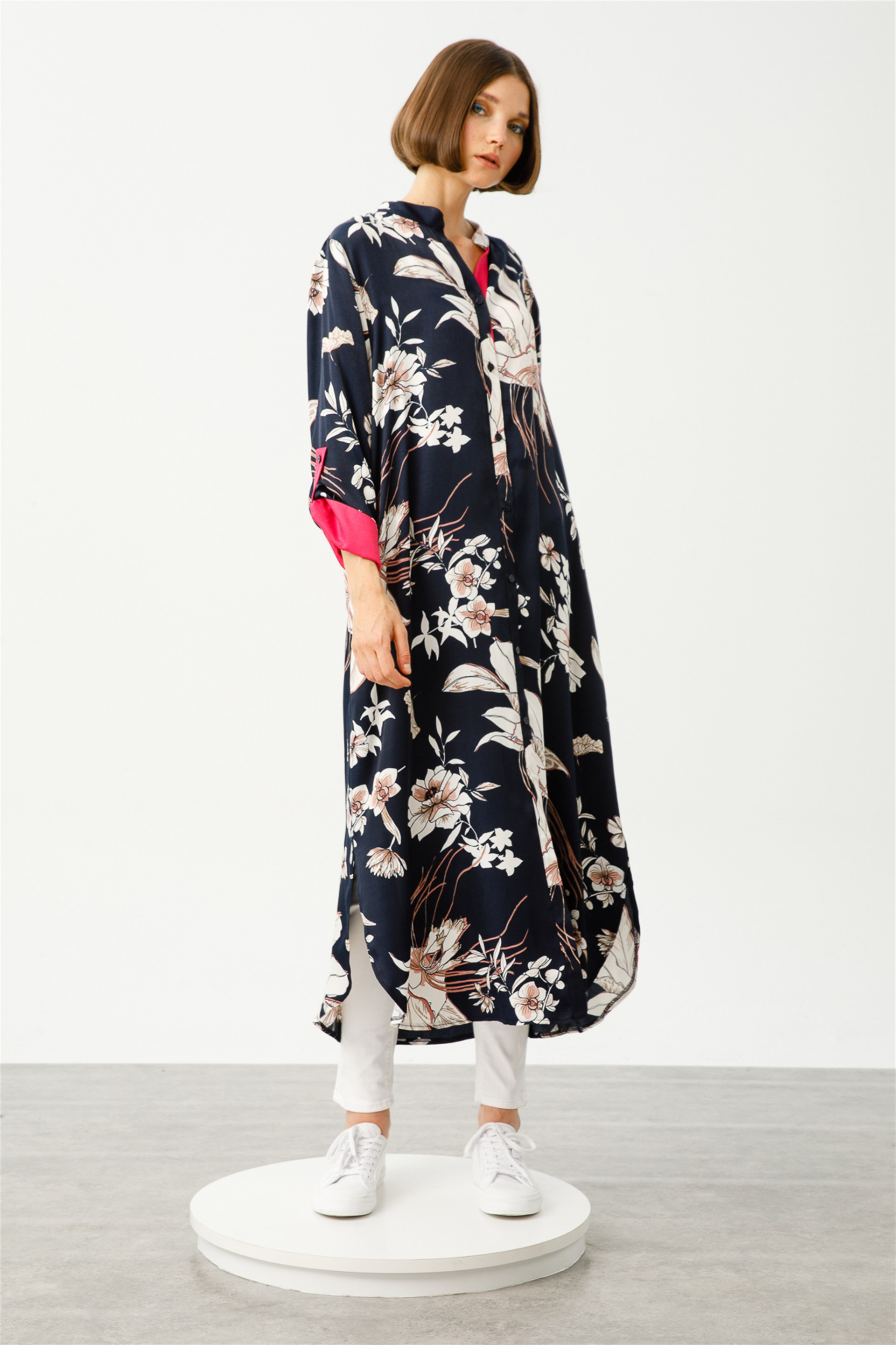 Kontrast Renk Detaylı Tunik Üretim Ülkesi: Türkiye Sezon: 2022 İlkbahar Yaz Kumaş İçeriği: %100 Polyester Boy Uzunluğu: 130 cm Ürün Ölçüleri 38/40 Beden için: Göğüs 117 cm, Basen 134 cm Bedenler arası 5 cm fark etmektedir. Manken Ölçüleri Giydiği Beden: 36 Boy: 175 cm Göğüs: 75 cm , Bel: 60 cm , Basen: 88 cm