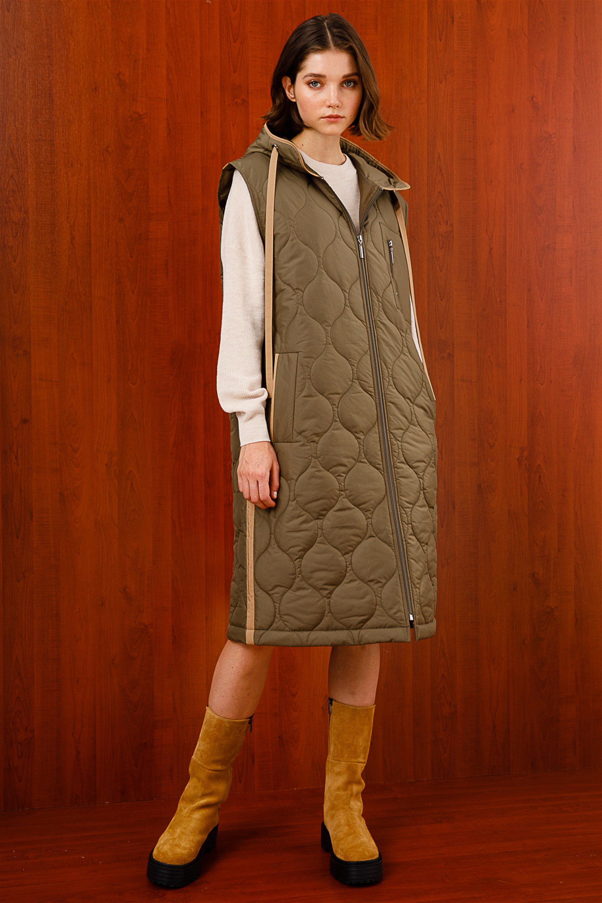 Kontrast Spor Garnili Kapitone Şişme Yelek-Haki (212703M YELEK-20)