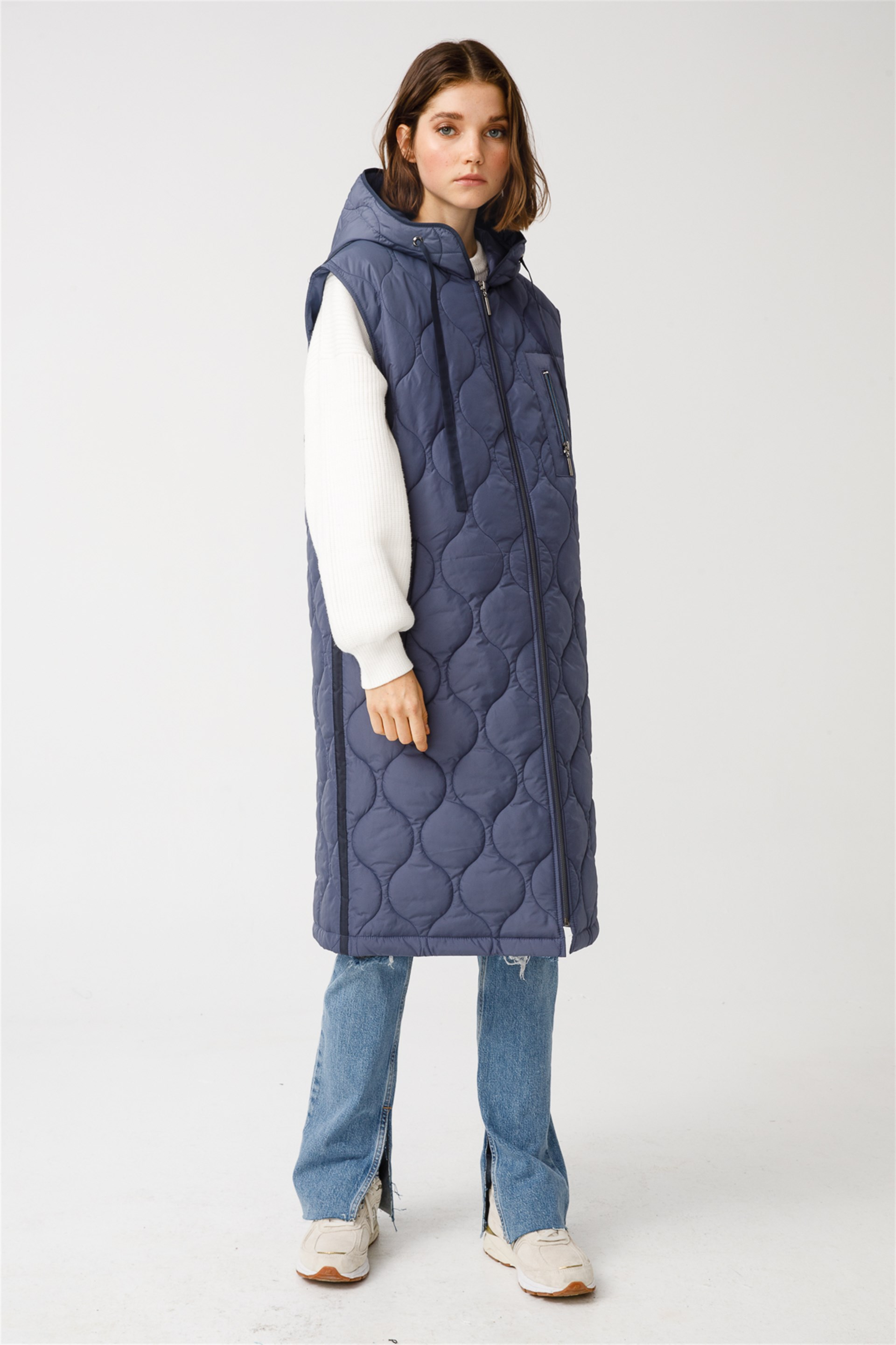 Kontrast Spor Garnili Kapitone Şişme Yelek-İndigo (212703M YELEK-44)