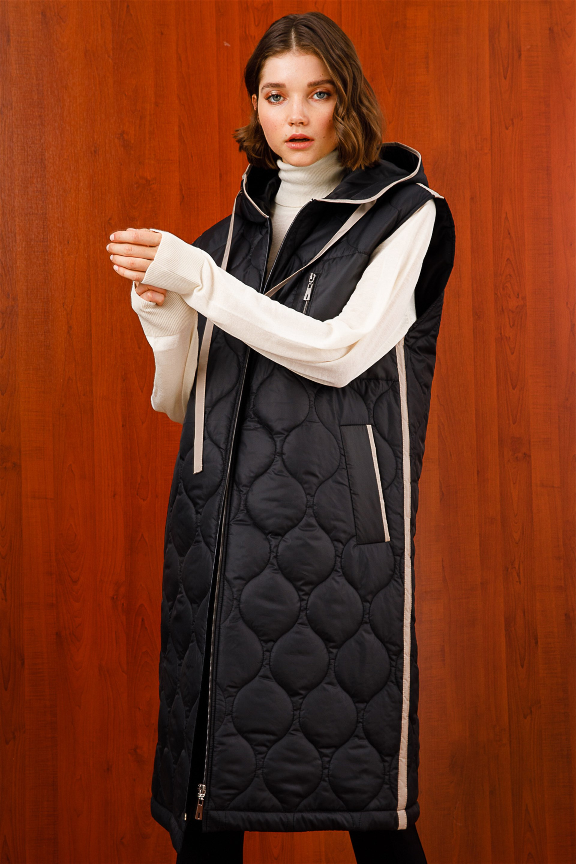 Kontrast Spor Garnili Kapitone Şişme Yelek-Siyah (212703M YELEK-01)