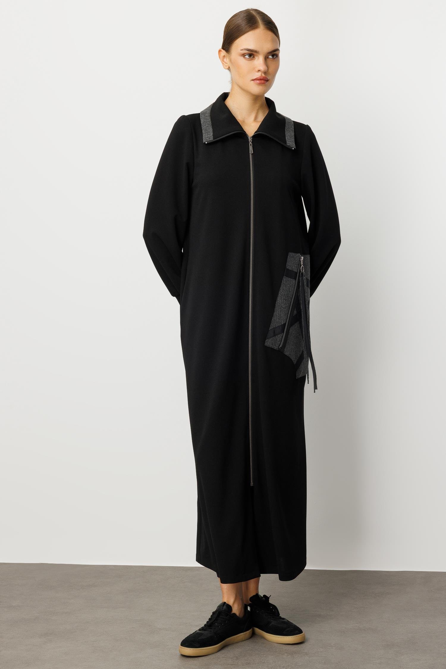 Krep Doku Özel El İşi Desen İşleme Spor Zamansız Kap/Ferace-Siyah (252842M KAP-01)