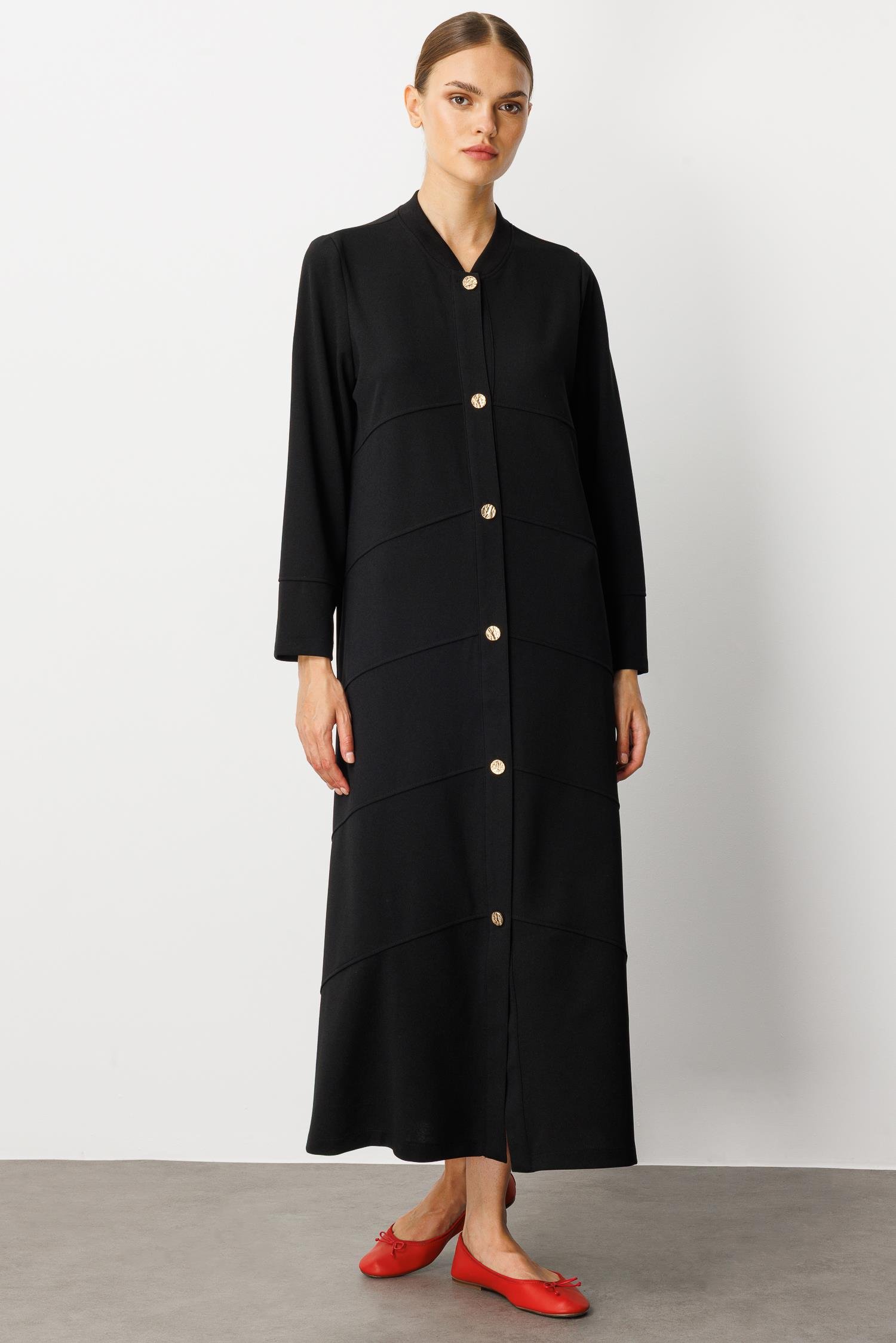 Krep Esnek Doku Elişi Garni Detaylı Kap Ferace-Siyah (252534M KAP-01)