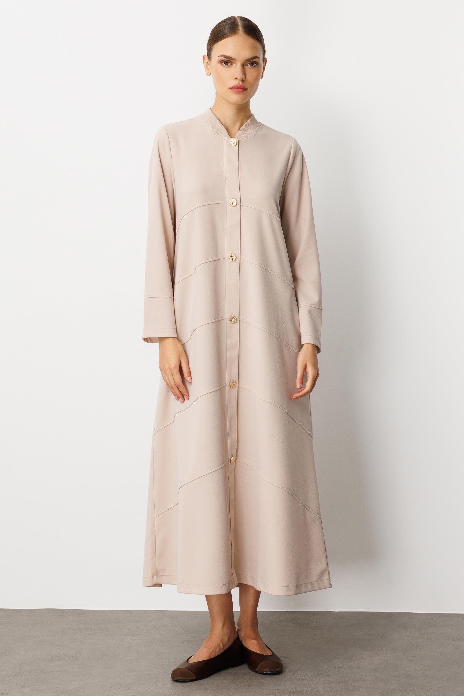 Krep Esnek Doku Elişi Garni Detaylı Kap Ferace-Taş (252534M KAP-12)