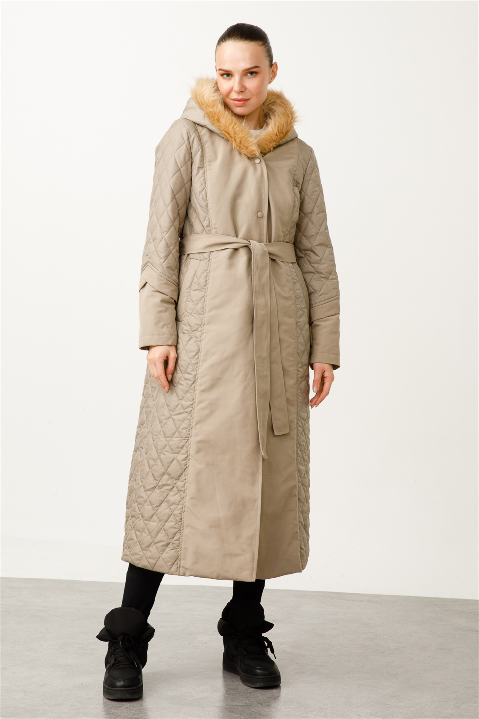 Kürklü Helene Kapitone Dolgulu Elit Manto-Taş (222524M KABAN-12)