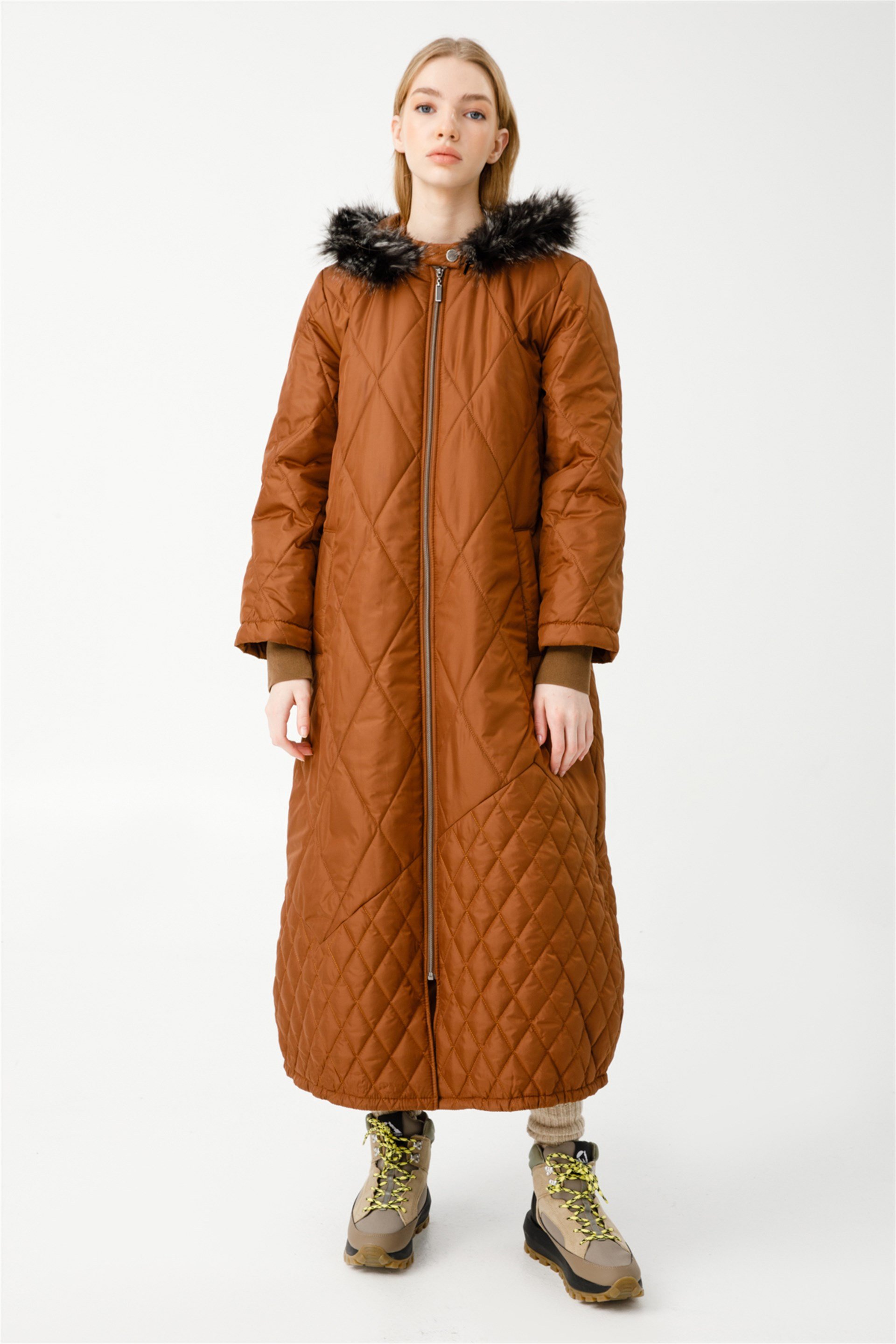 Kürklü Kolları Triko Detaylı Spor Kapitone Şişme Manto-Fındık (222539M KABAN-50)