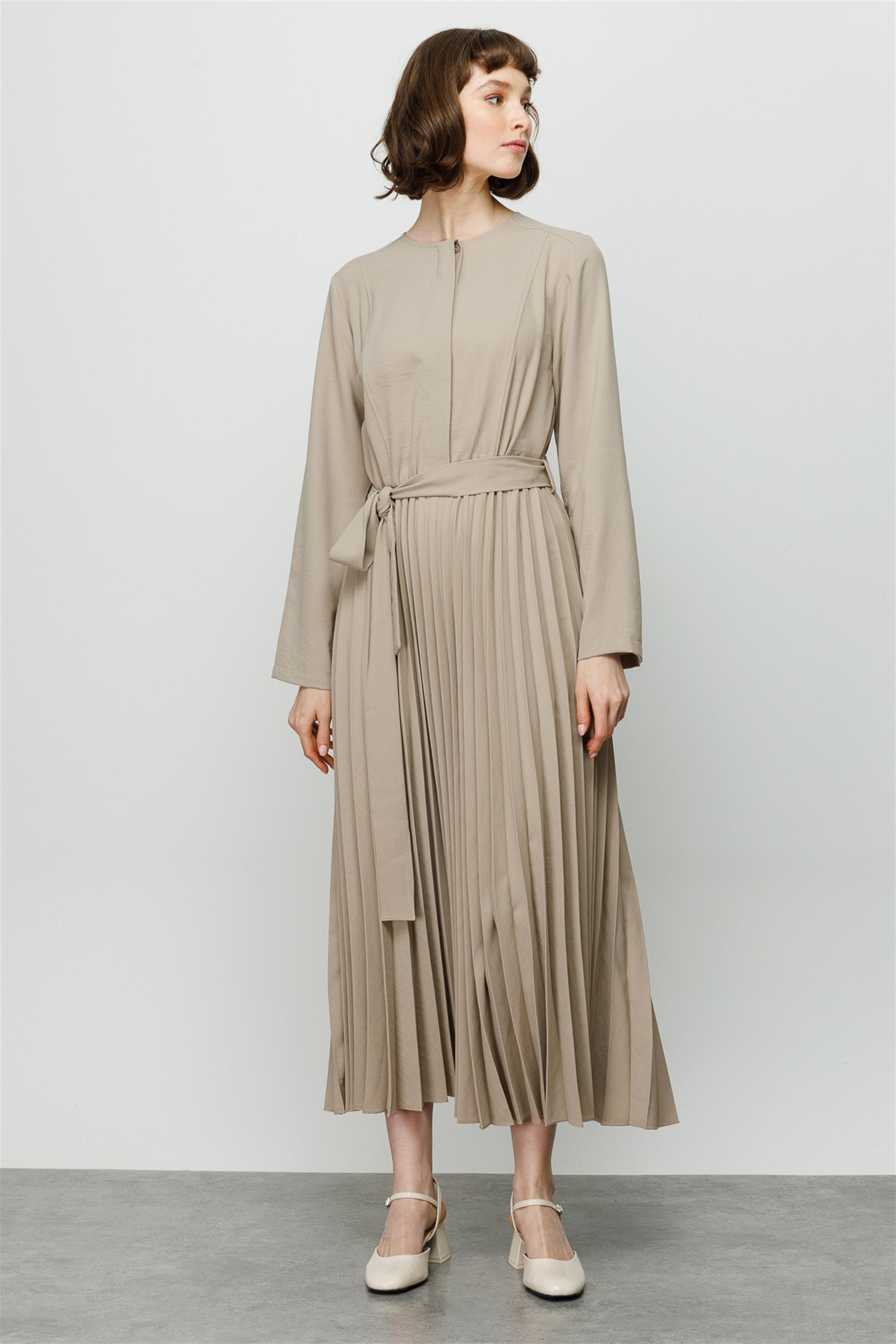 Lady Pilise Her Ortam ve Zaman İçin Tasarlanmış Zor Kırışan Nefes Alan Kumaş Elbise-Taş (231305M ELBİSE-12)