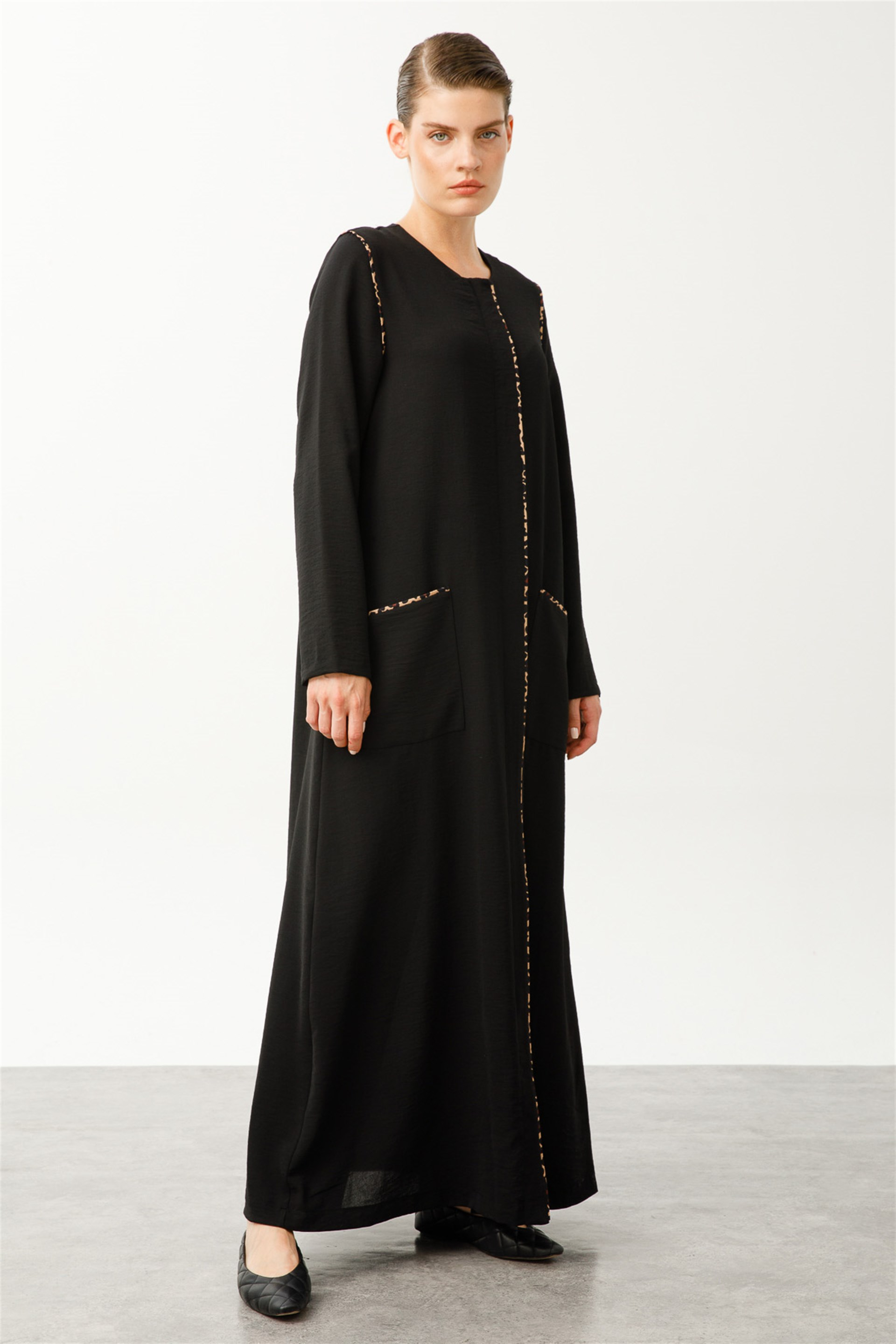 Leopar Biye Detaylı Spor Lüks Ferace-Siyah (221843M PARDESÜ-01)
