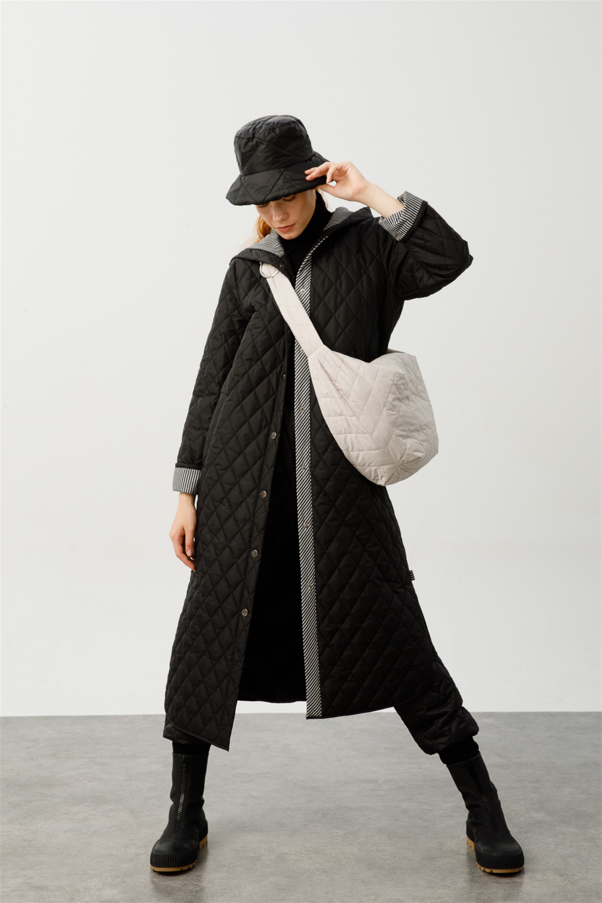 Line Garni Detaylı Kapitone Spor Baharlık Manto-Siyah