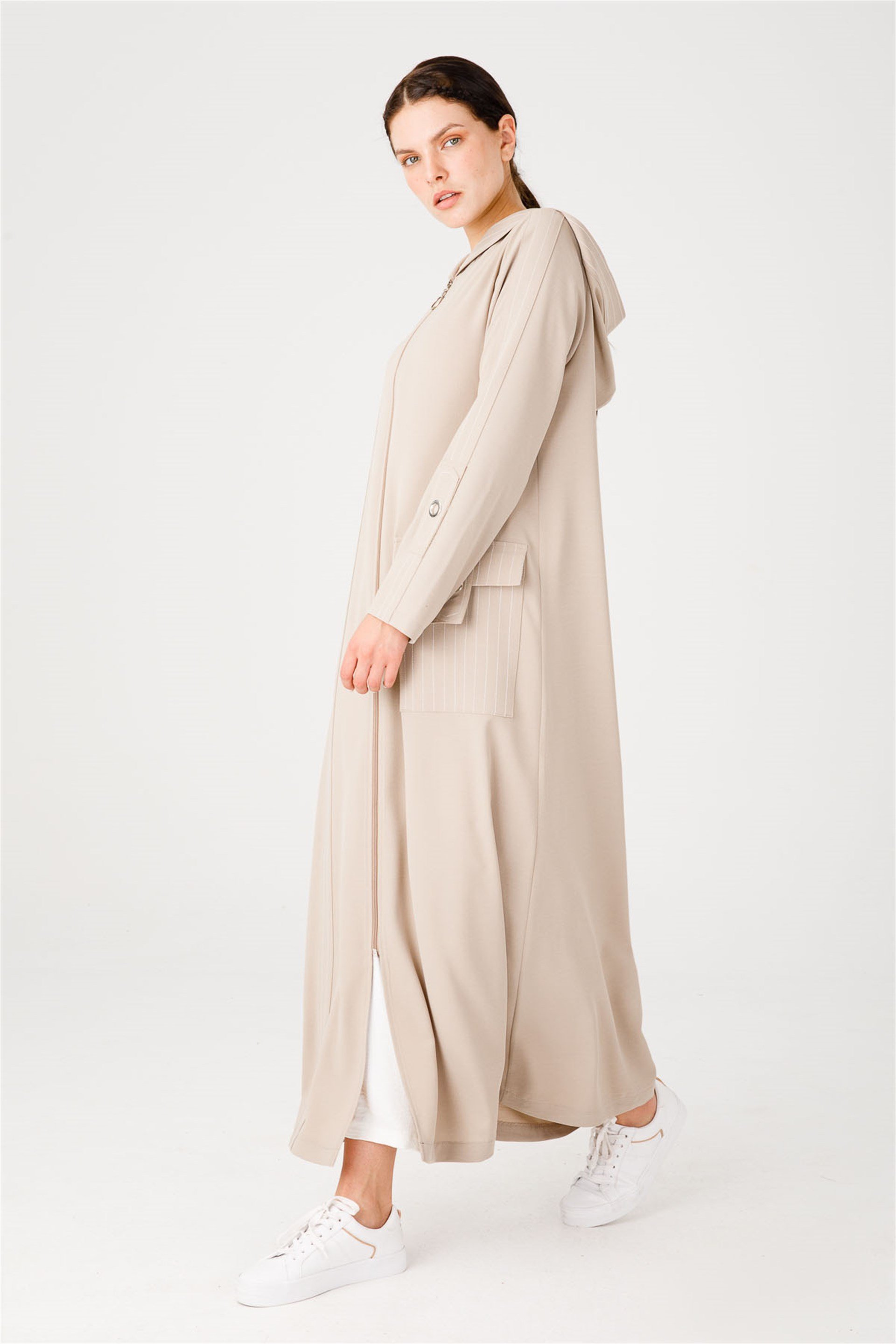 Marin Çizgili Kapüşonlu Spor Kap Üretim Ülkesi: Türkiye Sezon: 2021 İlkbahar Yaz Kumaş İçeriği: %100 Polyester Boy Uzunluğu: 138cm Manken Ölçüleri Giydiği Beden: 38 Boy: 176 cm Göğüs: 88 cm , Bel: 66 cm , Basen: 99 cm