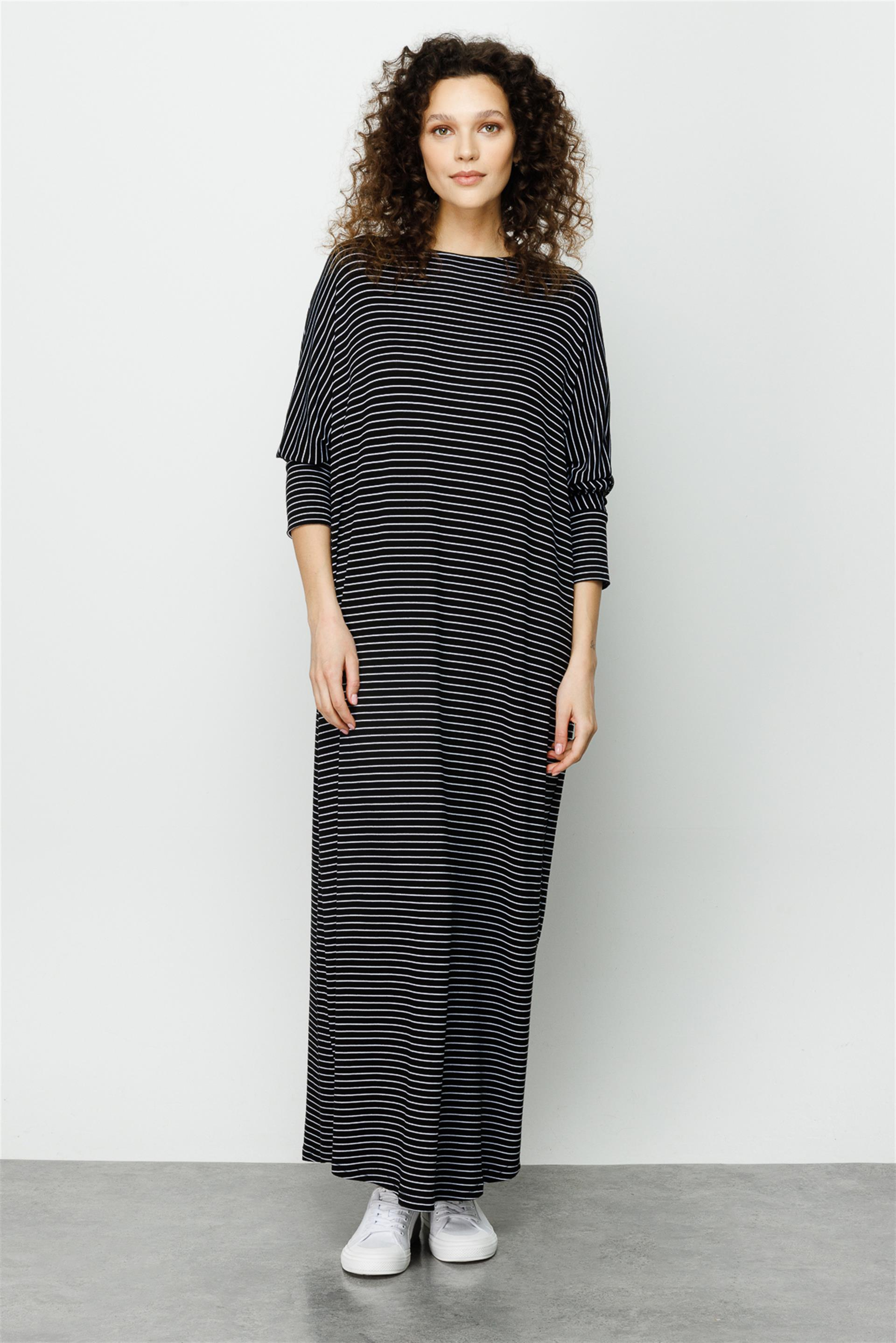 Marin Çizgili Örme Elbise-Siyah (231309M MARİN ÖRME ELBİSE-01)