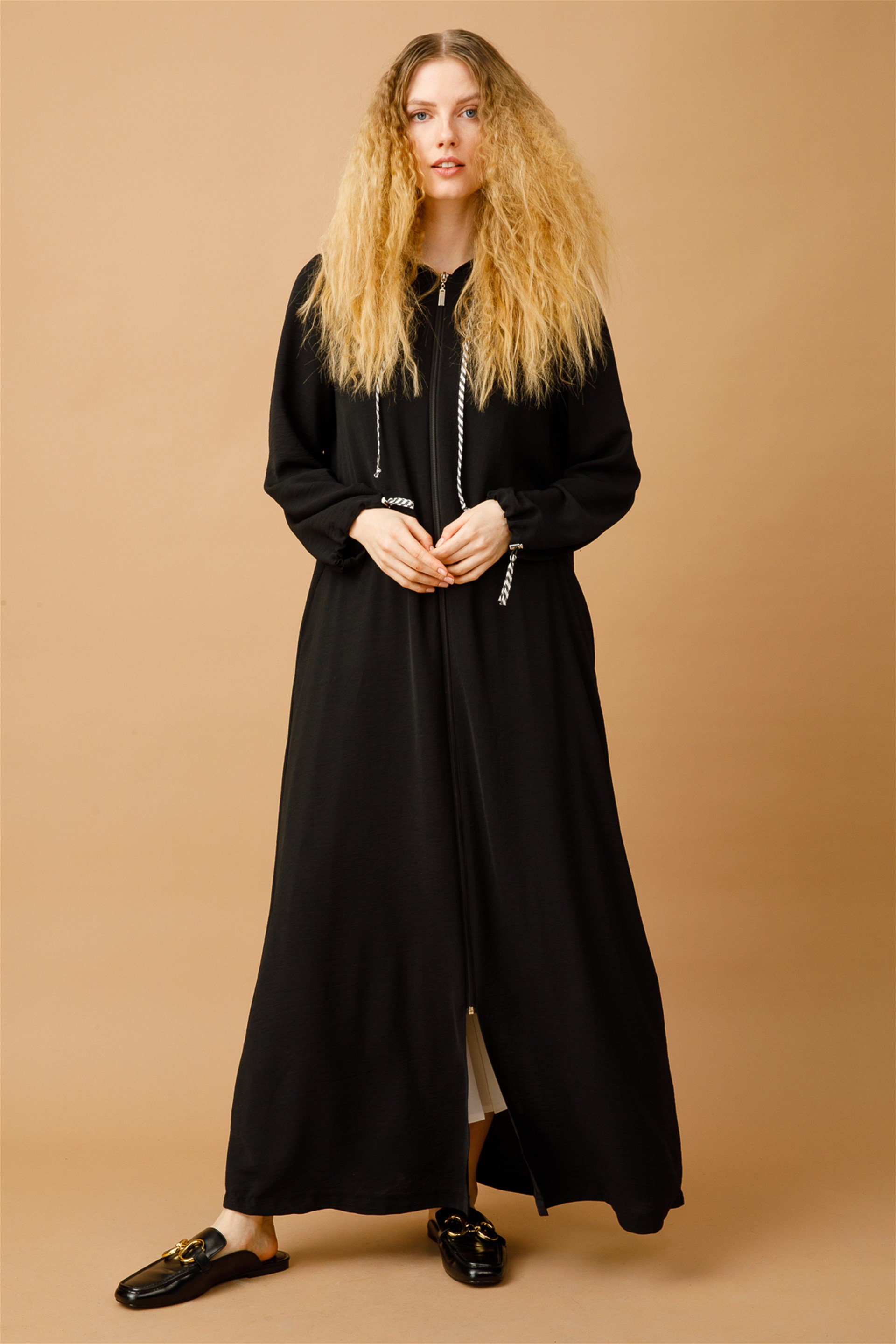 Marin Çizgili Zor Kırışan Nefes Alan Kumaştan Tam Boy Spor Kap-Siyah (221895M PARDESÜ-01)