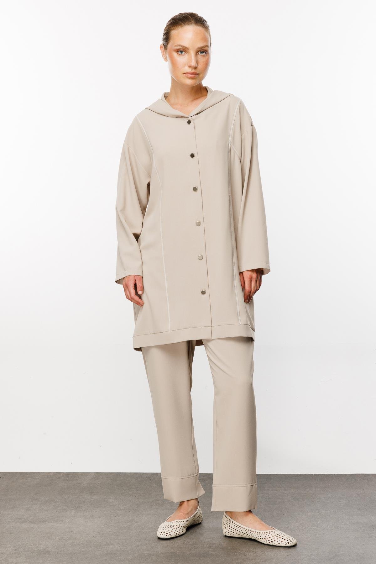 Mid Tunik Pantolon Özel Dokuma Kumaş Spor Kontrast Dikiş Detaylı Takım-Taş (241819M TAKIM-12)