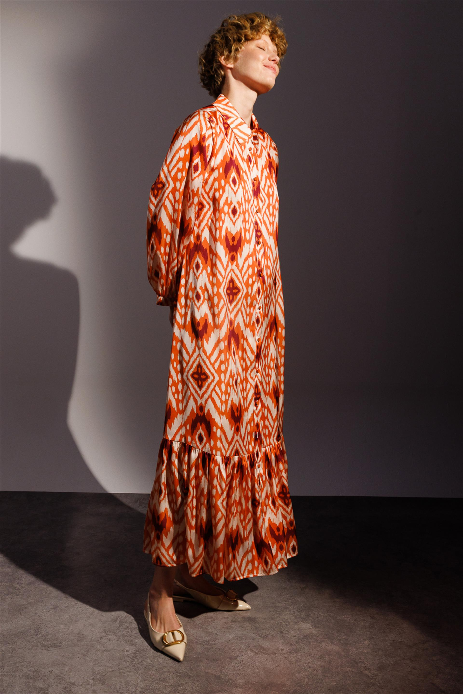 Moroccan Tam Boy Hafif Nefes Alan Kumaş Elbise-ORANGE (231316M ELBİSE-78)