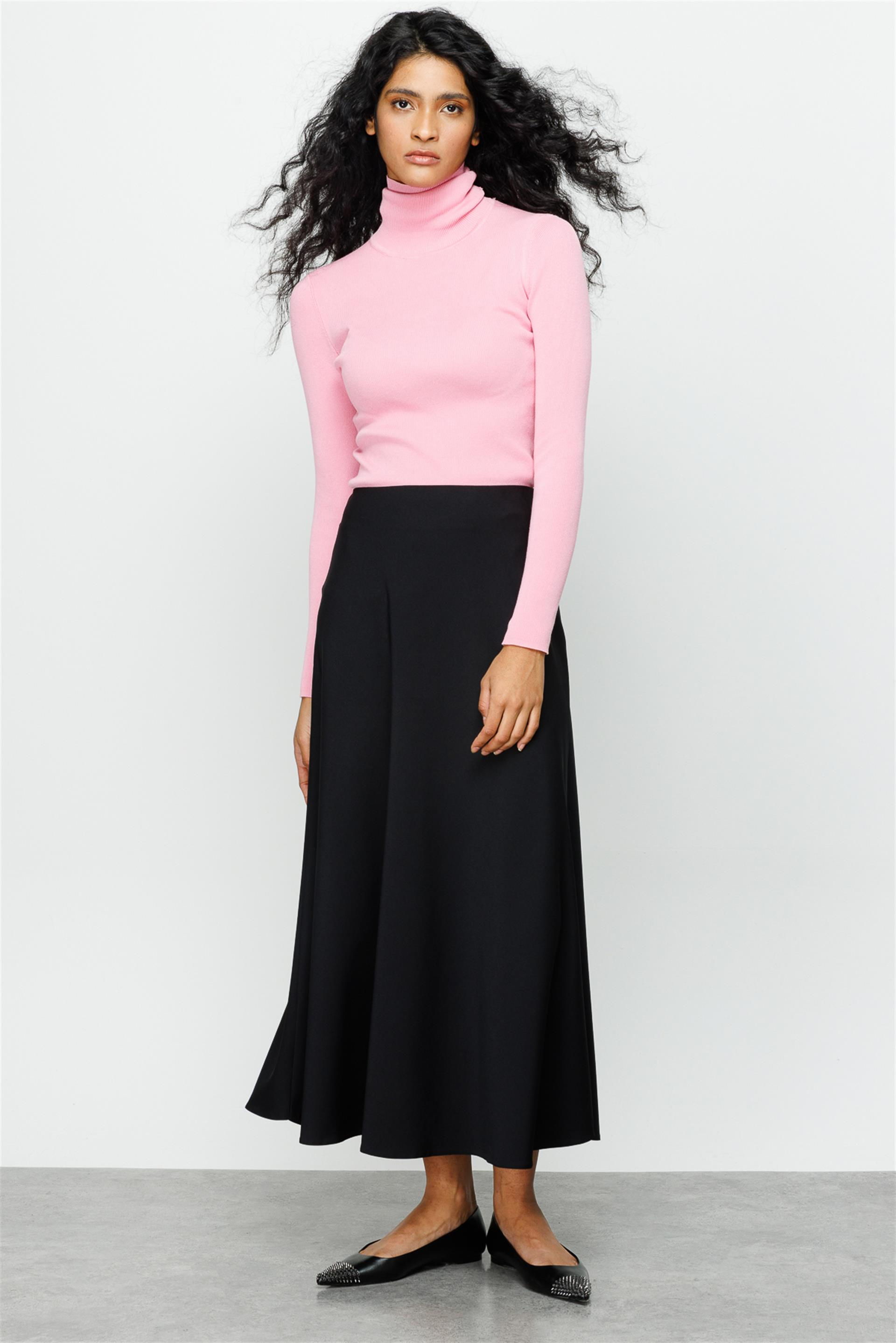 Must Have Verev Dökümlü Kumaş Zamansız Etek-Siyah