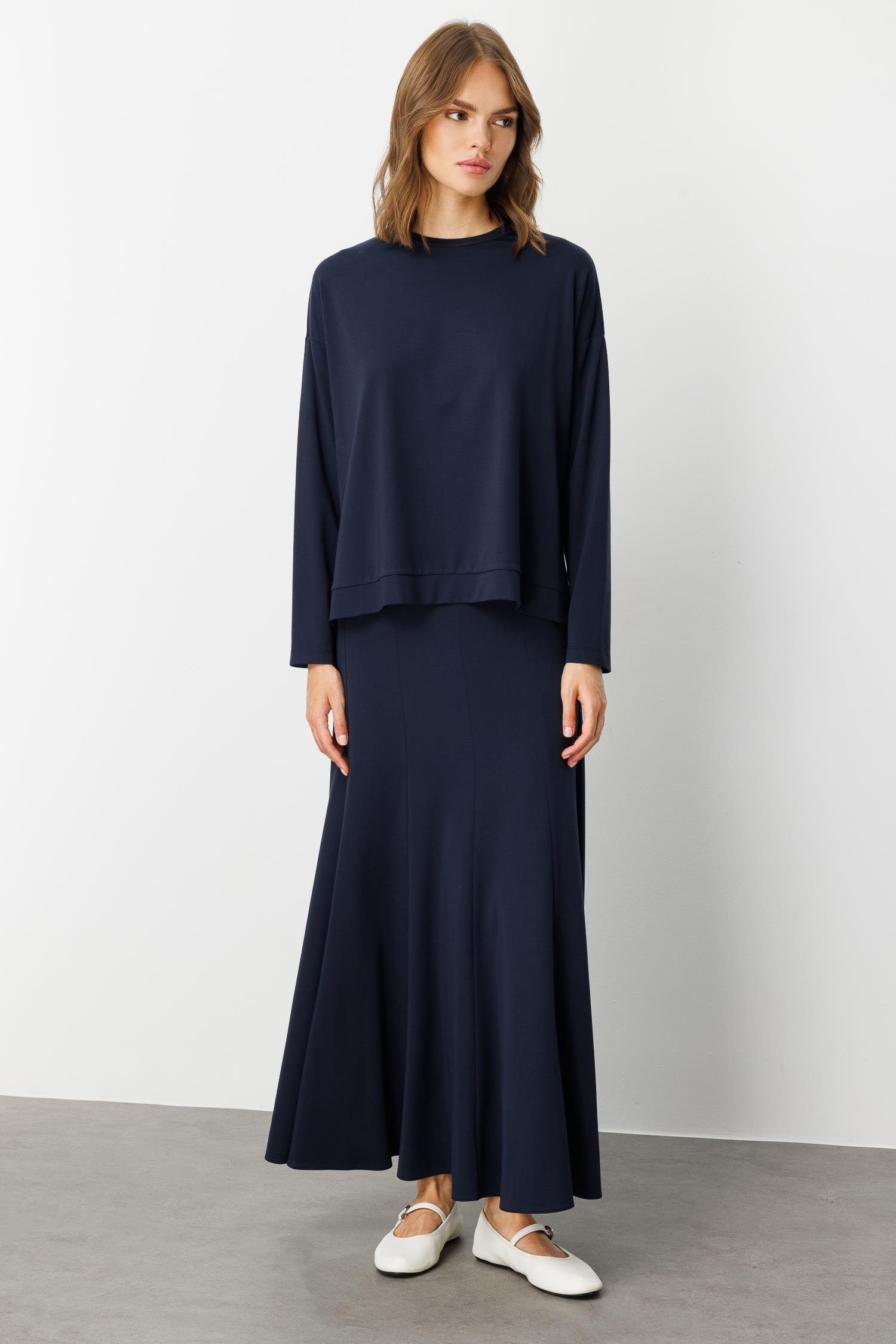 Mybch Örme Ekstra Dökümlü Yumuşak Dokulu Parçalı Etek Kombinli Zamansız Takım