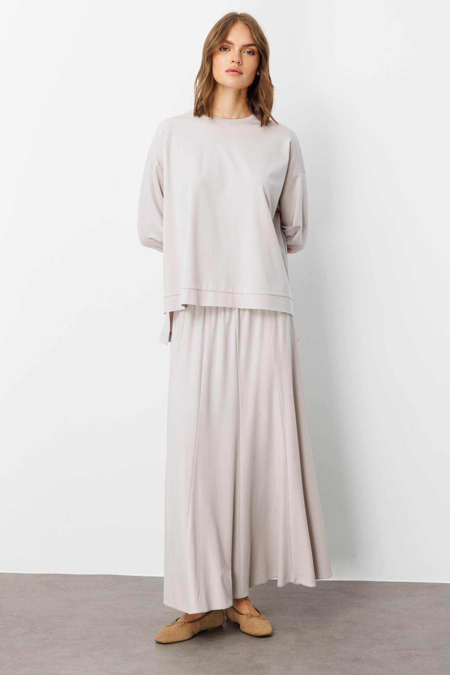 Mybch Örme Ekstra Dökümlü Yumuşak Dokulu Parçalı Etek Kombinli Zamansız Takım-Taş (252849M ETEKLİ KOMBİN-12)