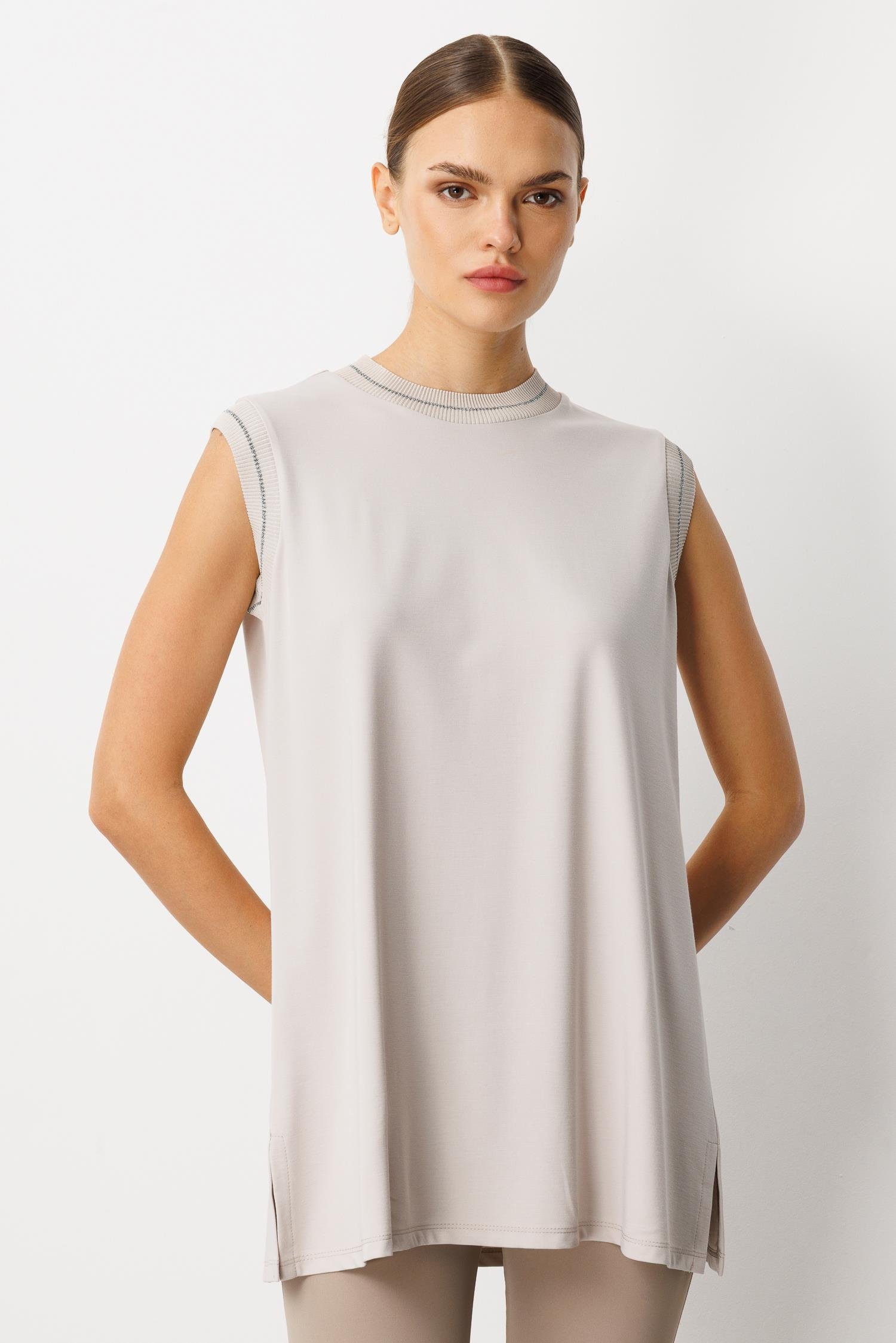 Mybch Örme Ekstra Dökümlü Yumuşak Dokulu Zamansız Kolsuz Üst-Taş (252404M BLUZ-12)