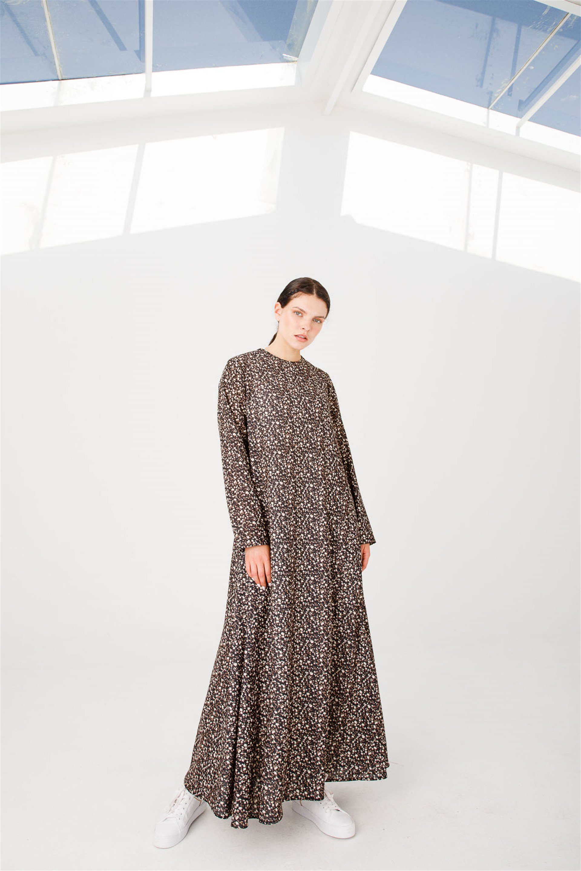 Nefes Alan Zor Kırışan Özel Günlerde ve Gündelik Hayatta Kullanabileceğiniz Elbise-LEOPAR (211316M ELBİSE-54)