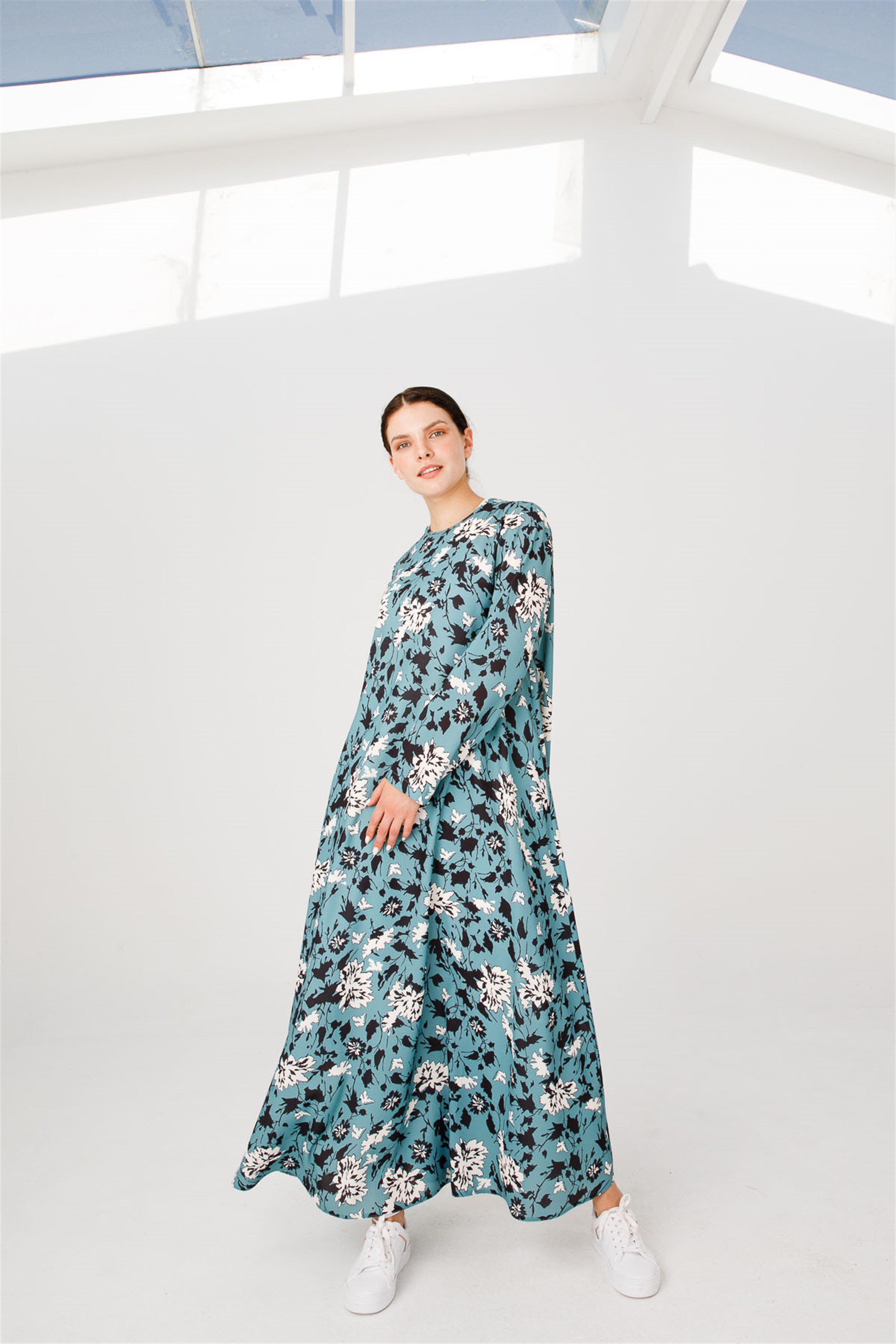 Nefes Alan Zor Kırışan Özel Günlerde ve Gündelik Hayatta Kullanabileceğiniz Elbise-Yeşil