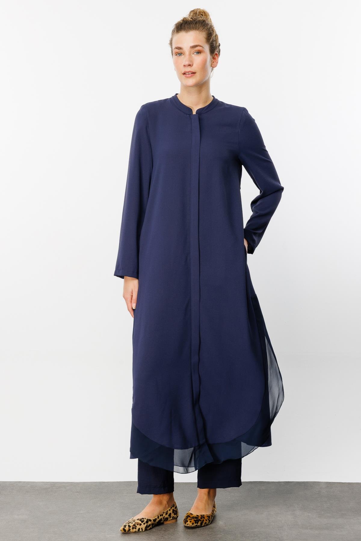 NEWROUGE Şifon Garni Detaylı Zor Kırışan Nefes Alan Özel Dokuma Tam Boy Zamansız Spor Kap-Laci (241521M FERACE-04)
