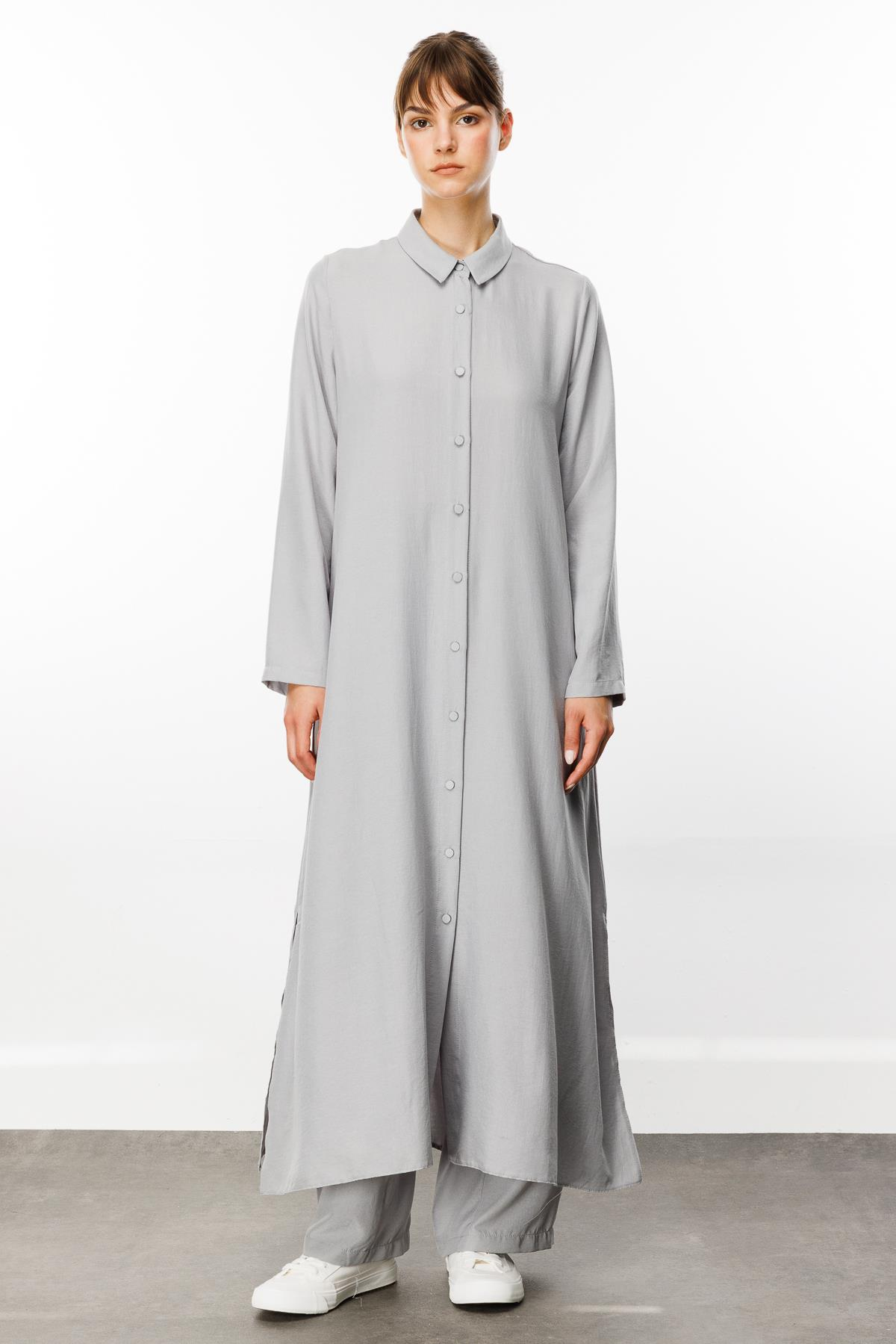 NOUVO SET İpekçe Doku Kap/Elbise - Pantalon Takım-Gri (251898M PANTOLONLU KOMBİN-18)