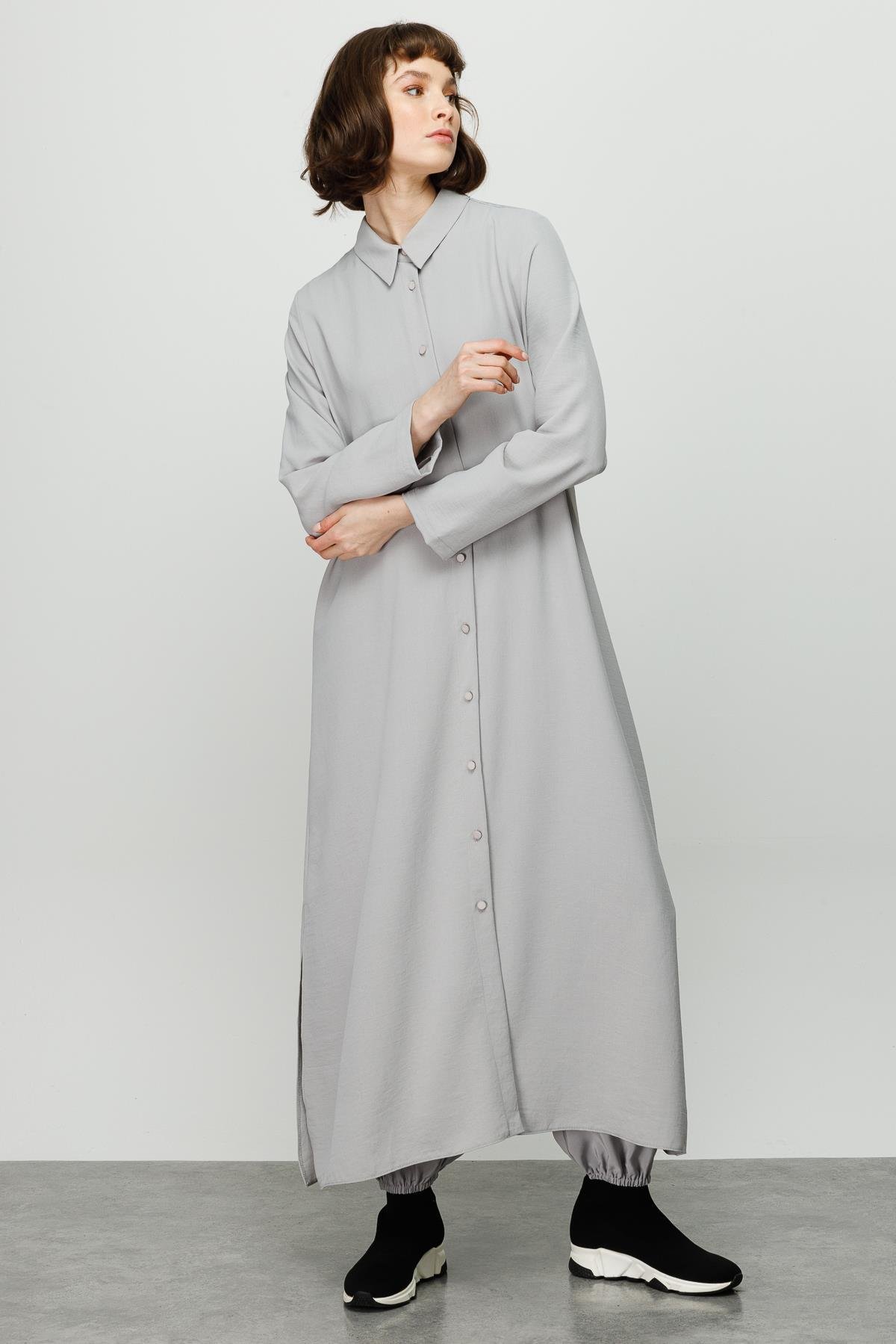 Nuovo Tafta Pelerin Detaylı Zamansız Tam Boy Kap-Gri (231597M NUOVO PELERİN-18)