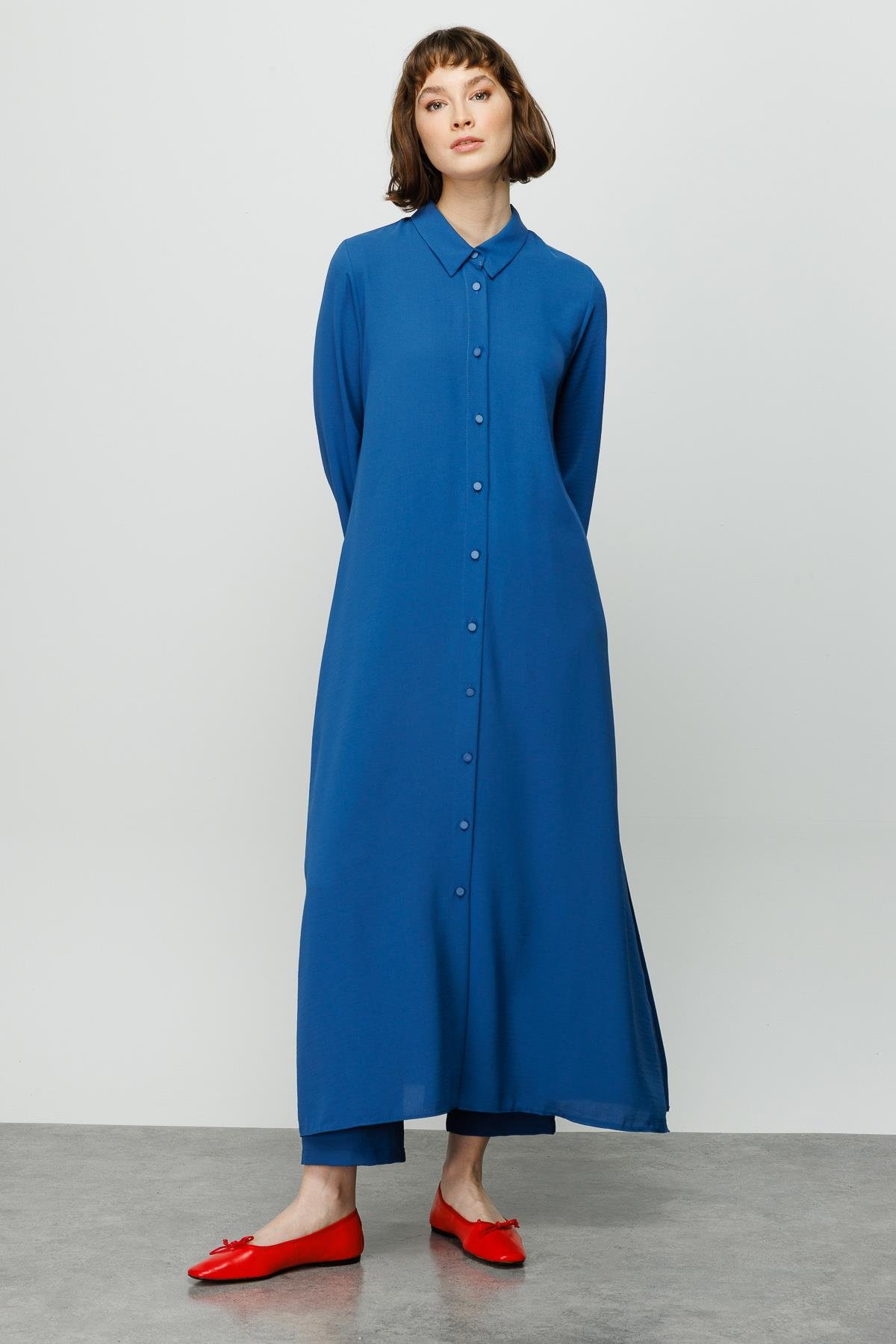 Nuovo Tafta Pelerin Detaylı Zamansız Tam Boy Kap-İndigo (231597M NUOVO PELERİN-44)