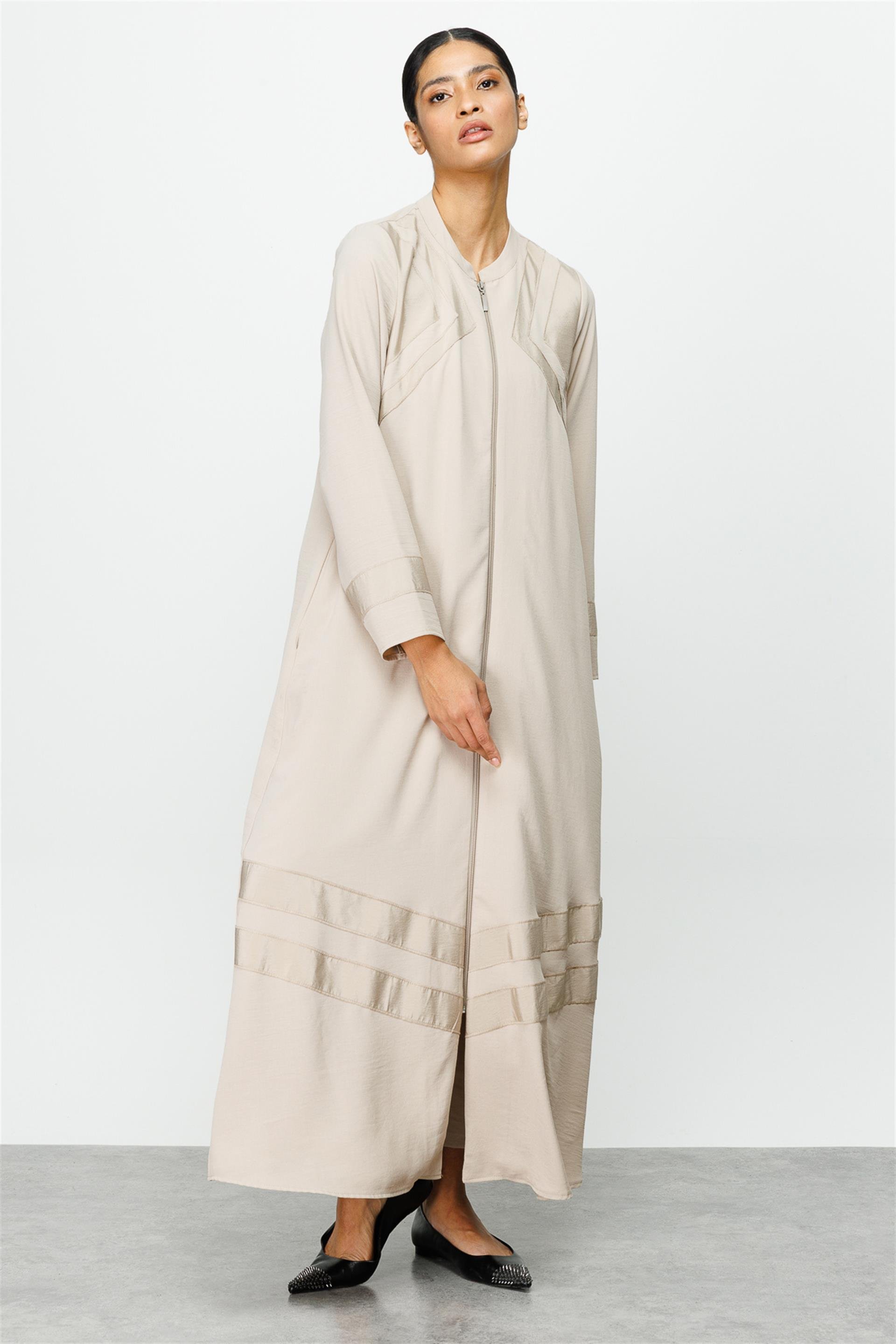 Omuz Kısmı Tafta Garnili Uzun Kap Ferace-Taş