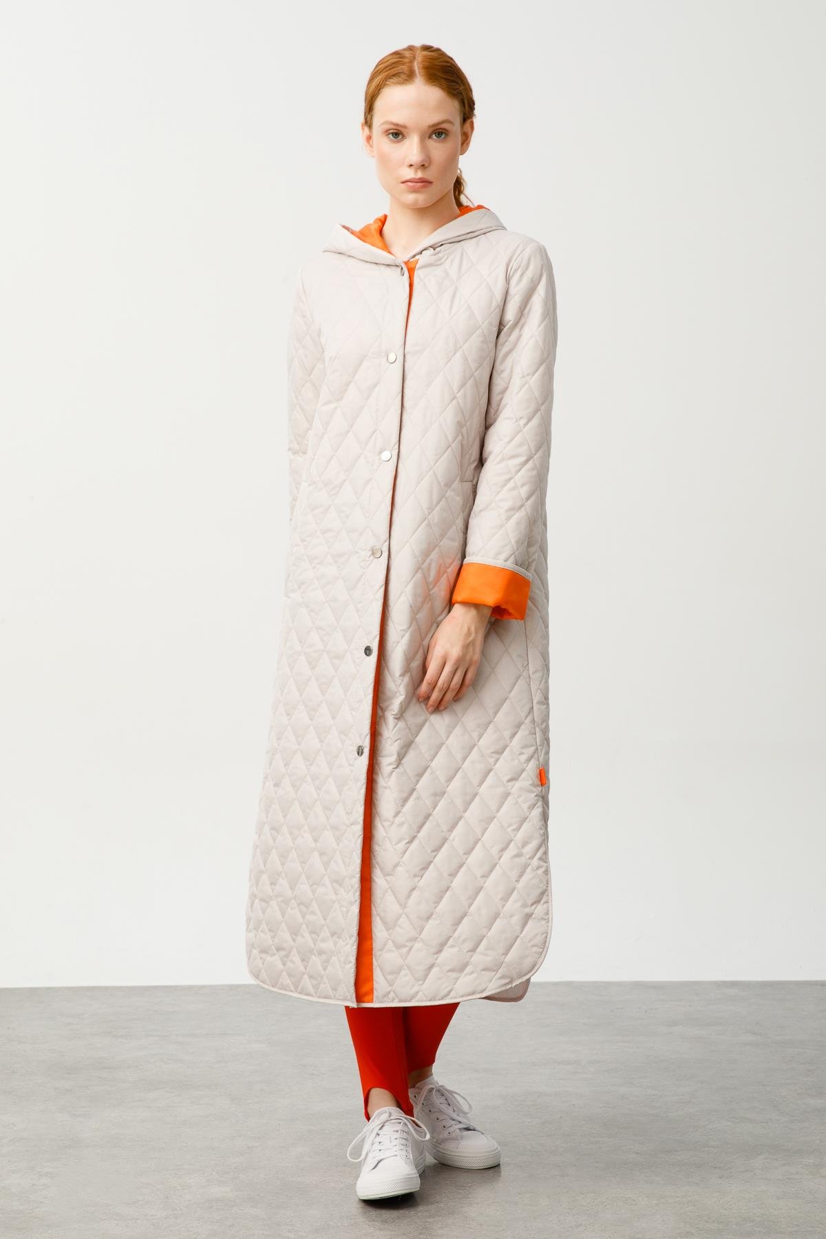 Orange Garni Detaylı Kapitone Spor Baharlık Manto-Gümüş