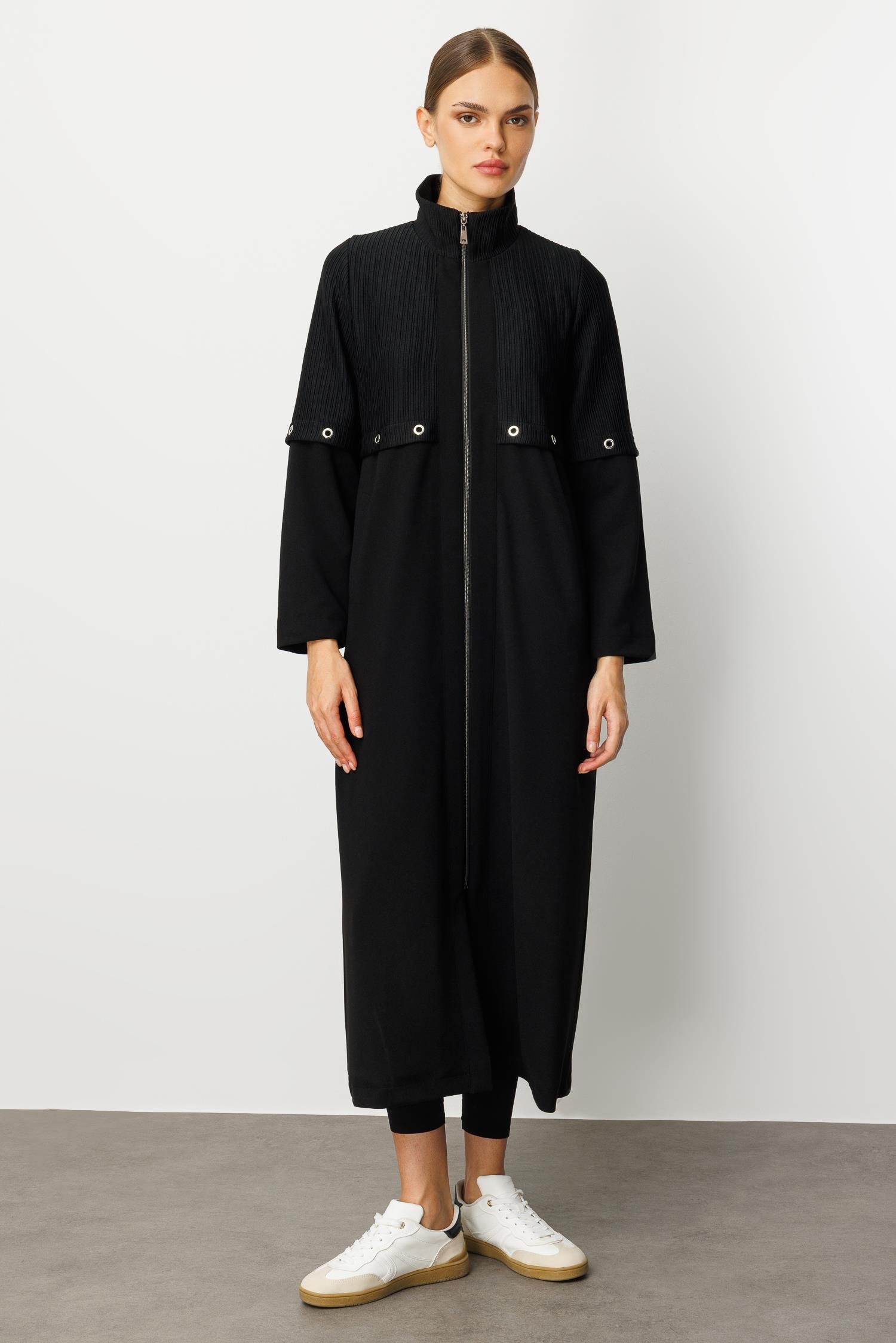 OTTO VE KREP DOKU MİX ASTARLI ALLER GARNİ AKS DETAYLI MEVSİMLİK ZAMANSIZ TRENCH/KAP-Siyah