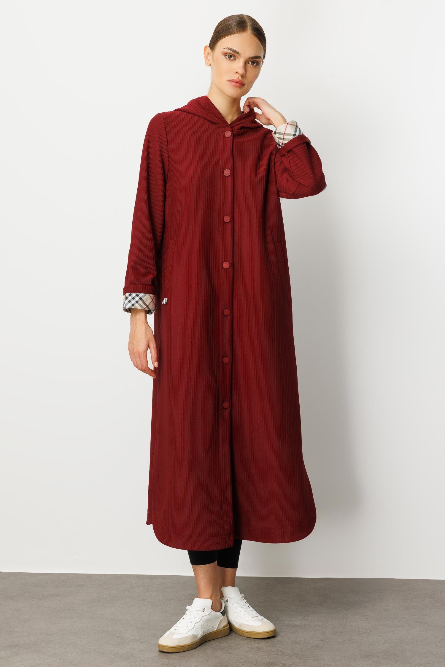 Özel Garni ve Aks Detaylı Otto Kumaş Astarlı Mevsimlik Spor Zamansız Trench / Kap-Bordo (252589M KAP-05)