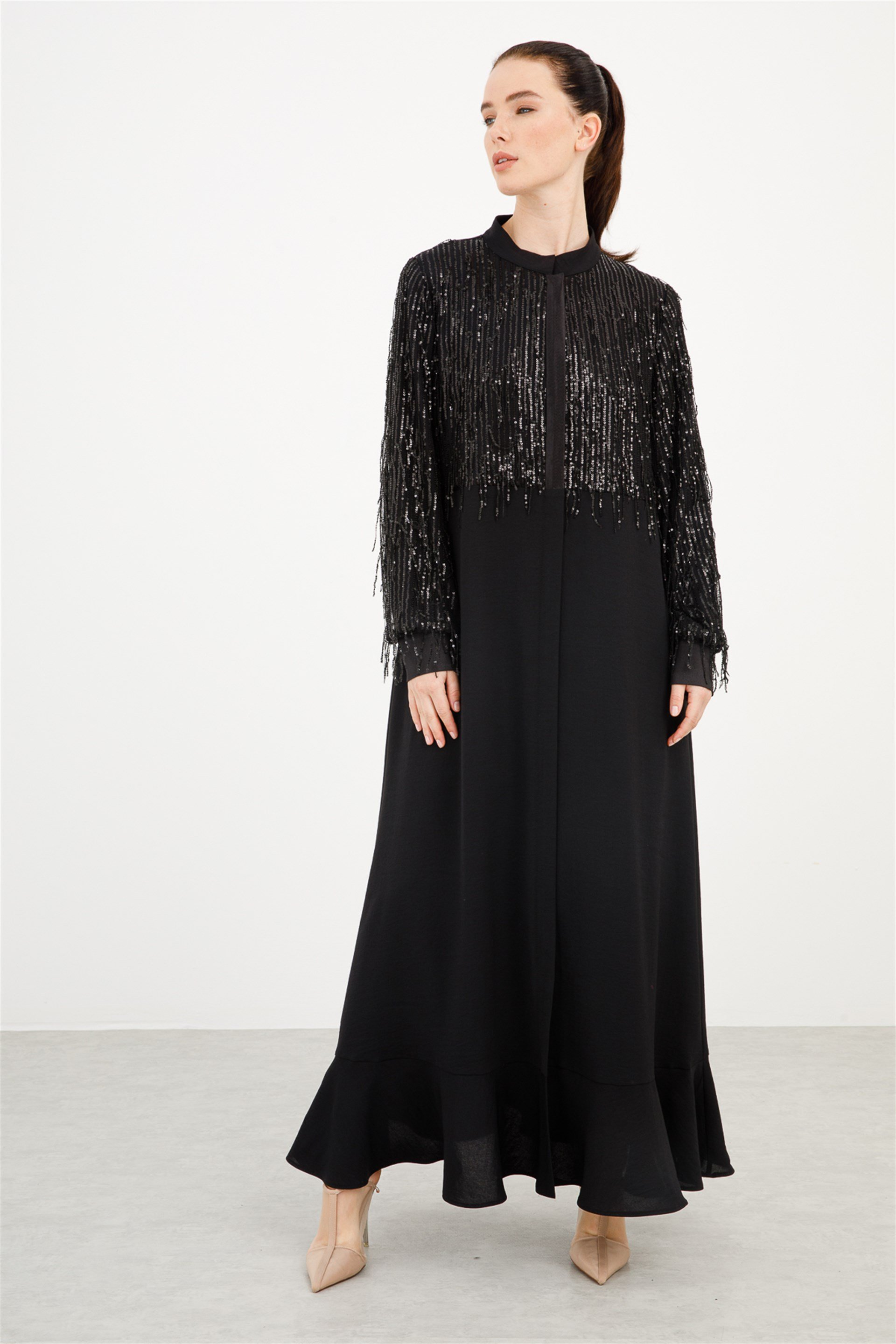 Özel Günler İçin Tasarlanmış Pul ve El İşi Detaylı Ferace-Siyah