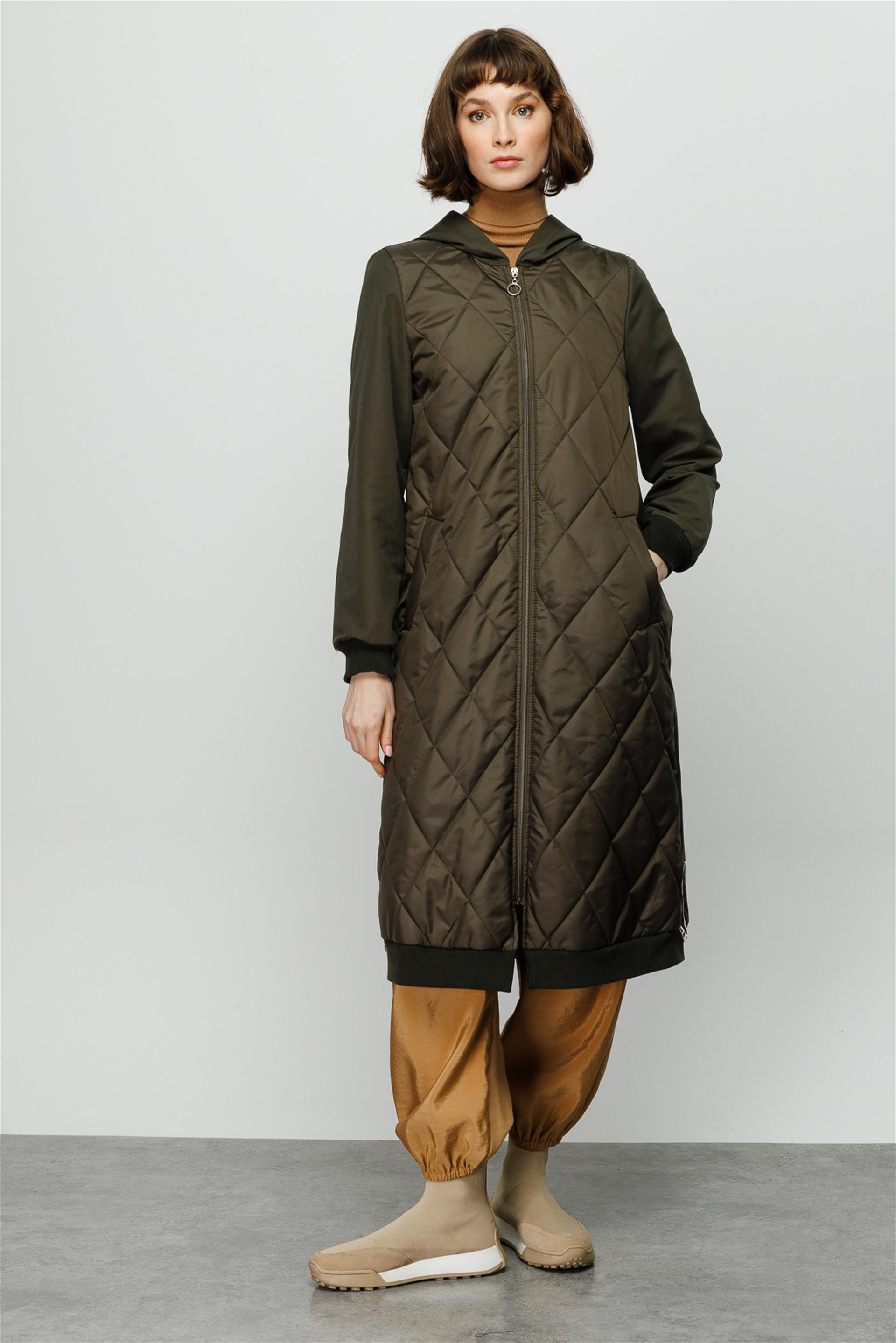 Özel Olarak Bahar için Kapitone ve Soft Trench Kumaş ile Üretilmiş Trench Kap-Haki (231528M İŞLEMELİ KAP-20)