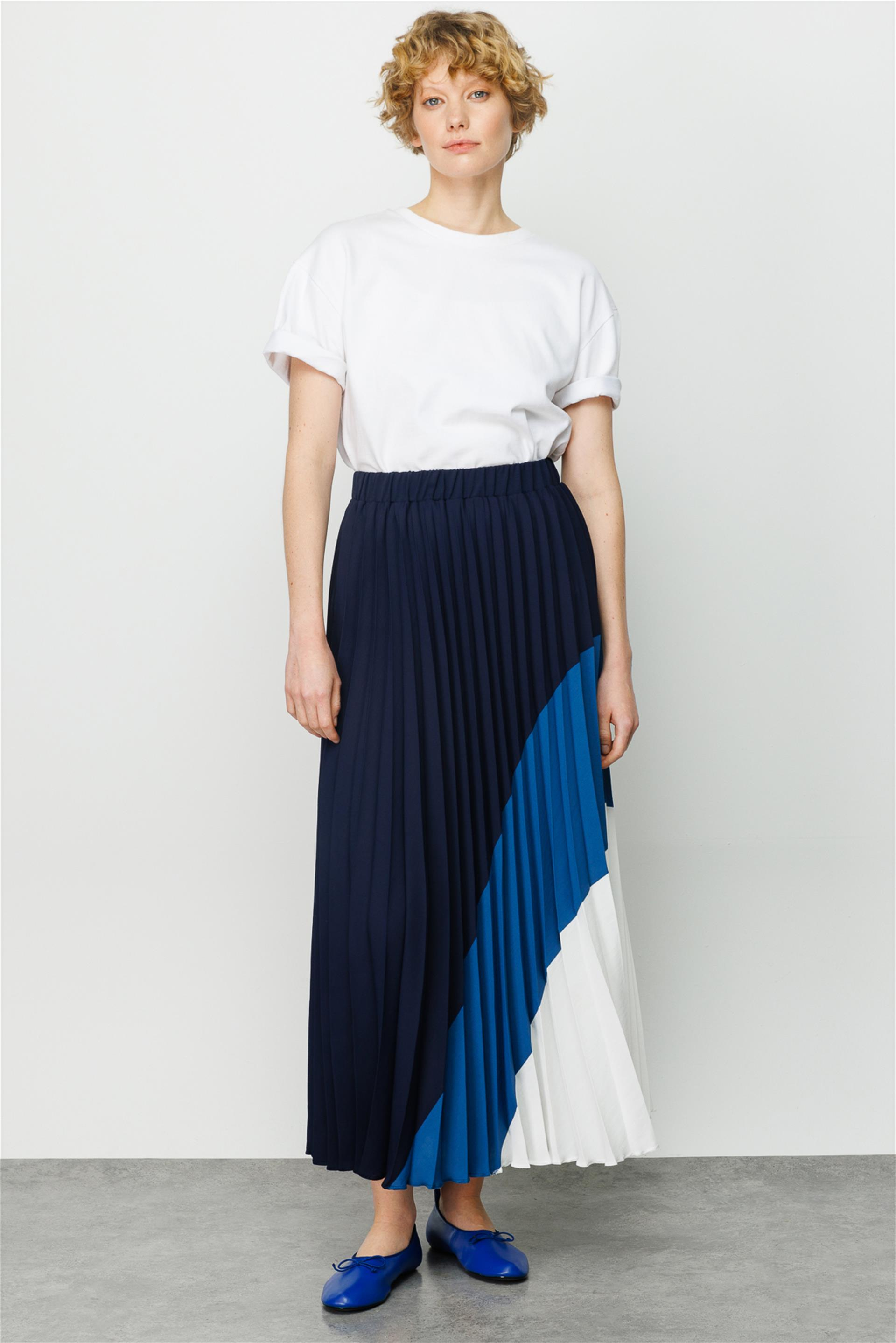 Parça Kumaş Dalga Detaylı Pilise Etek-Laci