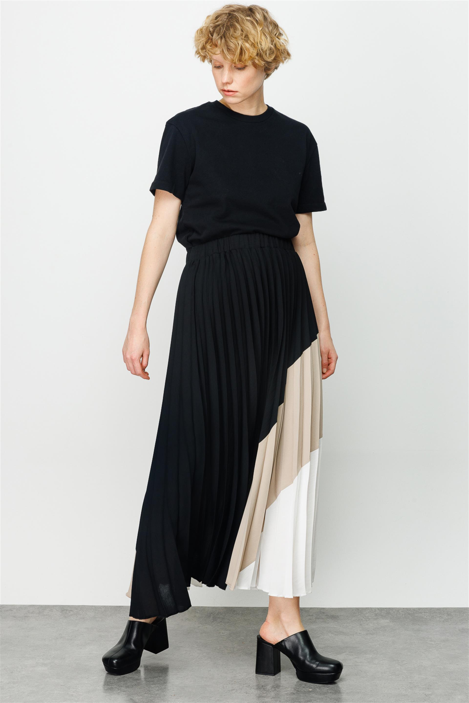 Parça Kumaş Dalga Detaylı Pilise Etek-Siyah (231208M ETEK-01)