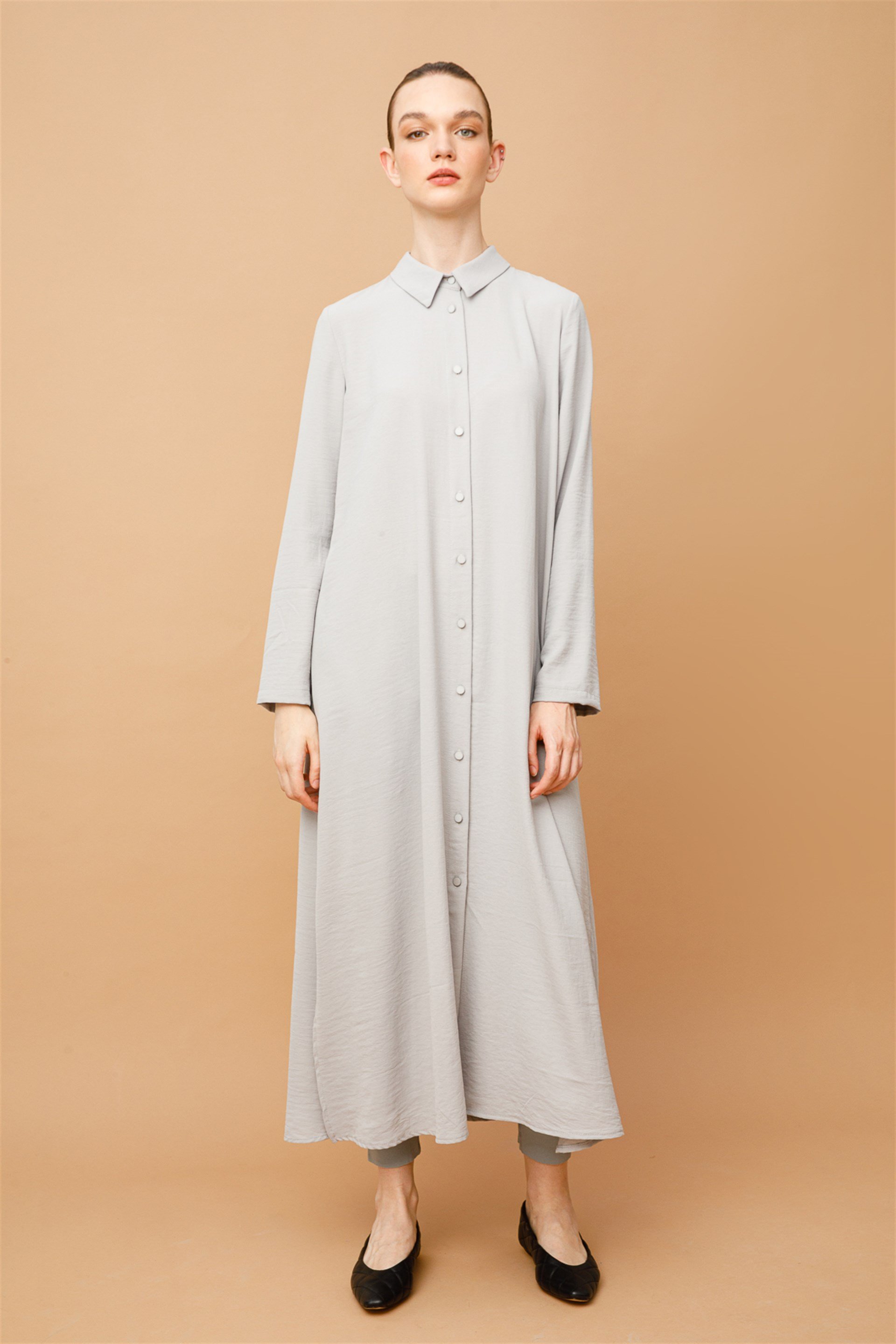 Pelerin Detaylı Tam Boy Spor Kap-Gri (221854M TUNİK-18)