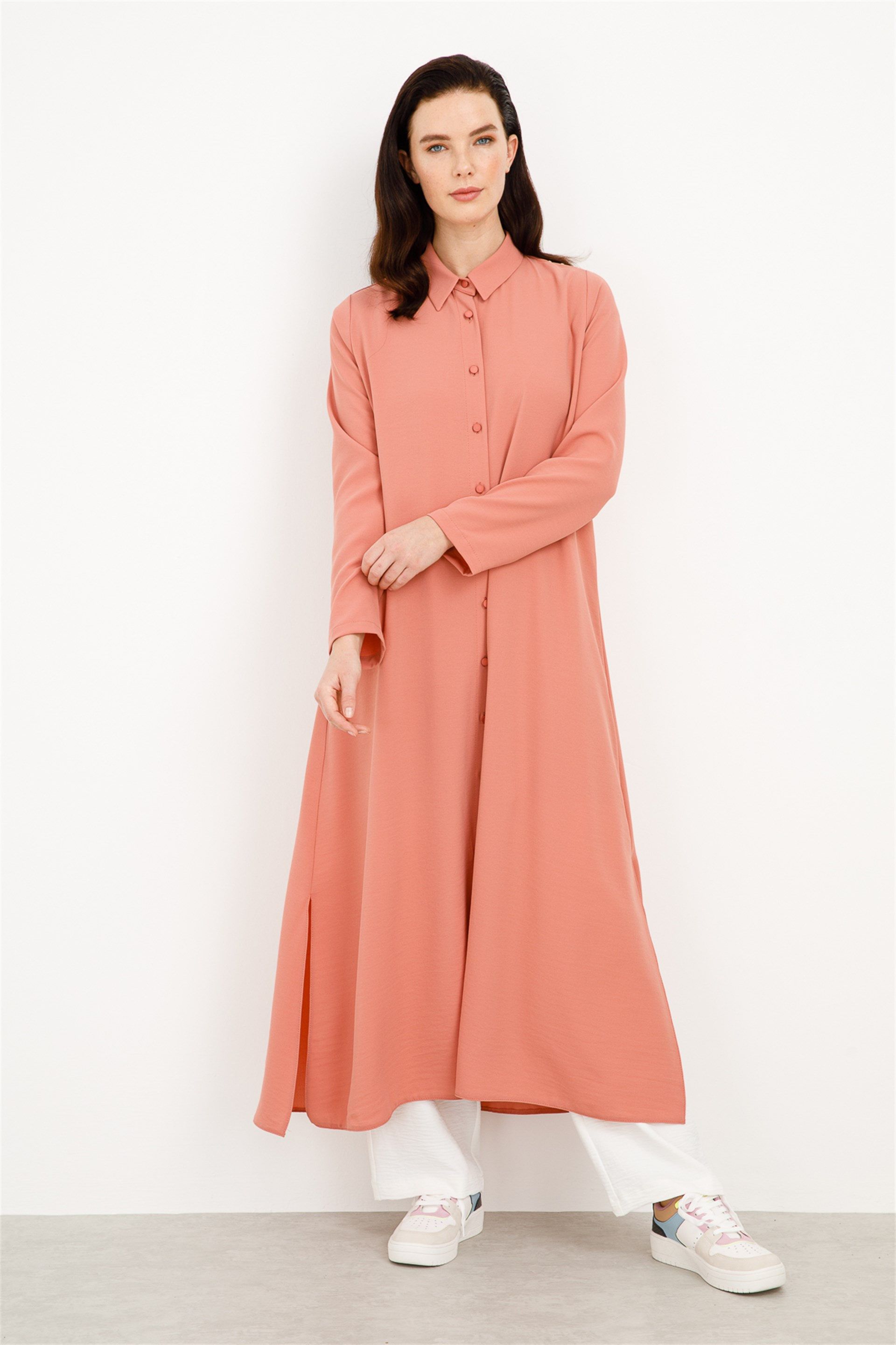 Pelerini Puantiye Detaylı Tam Boy Basic Spor Tunik Kap-Pudra (211597M TUNİK-10)