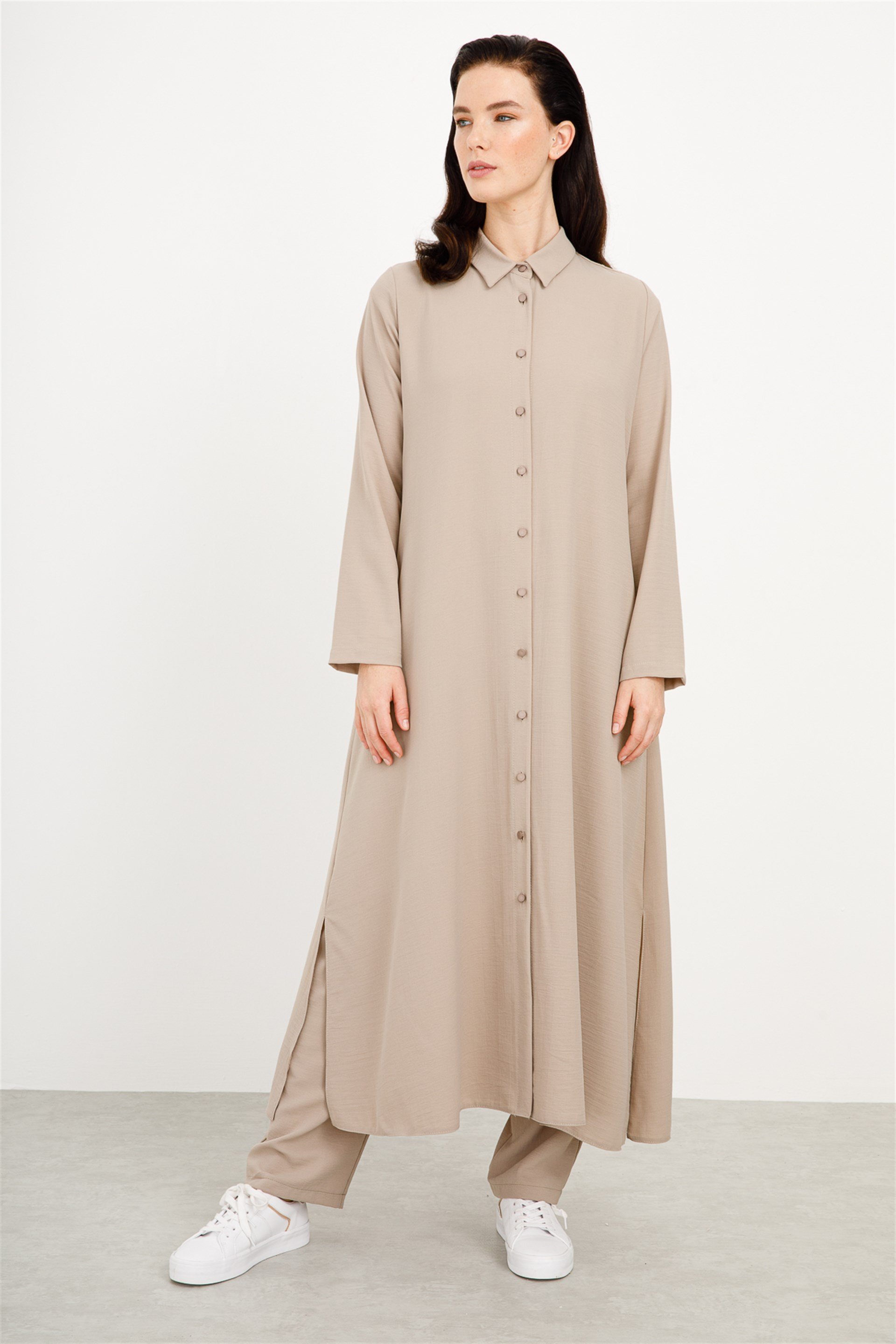 Pelerini Puantiye Detaylı Tam Boy Basic Spor Tunik Kap-Taş (211597M TUNİK-12)