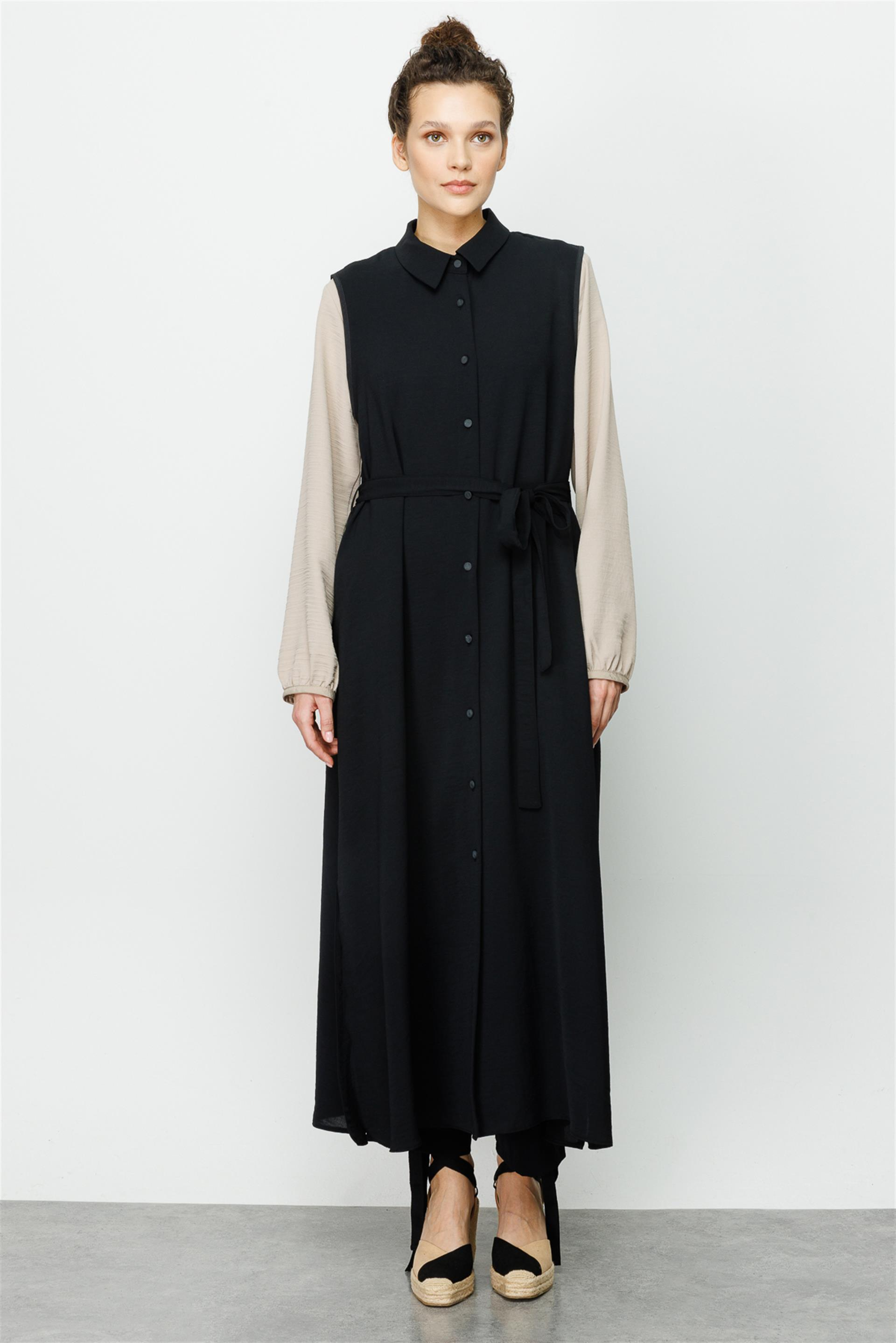 Pelerini Tafta Uzun Nefes Alan Zor Kırışan Kumaş Spor Yelek Kap-Siyah (231709M PELERİN YELEKAP-01)